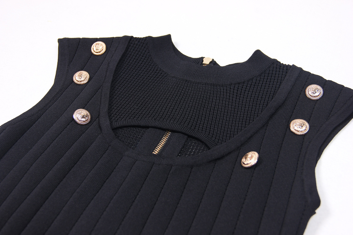 Slim Fit Slimming Mid Length Back Hollow Out Cutout round Neck Knitted Dress