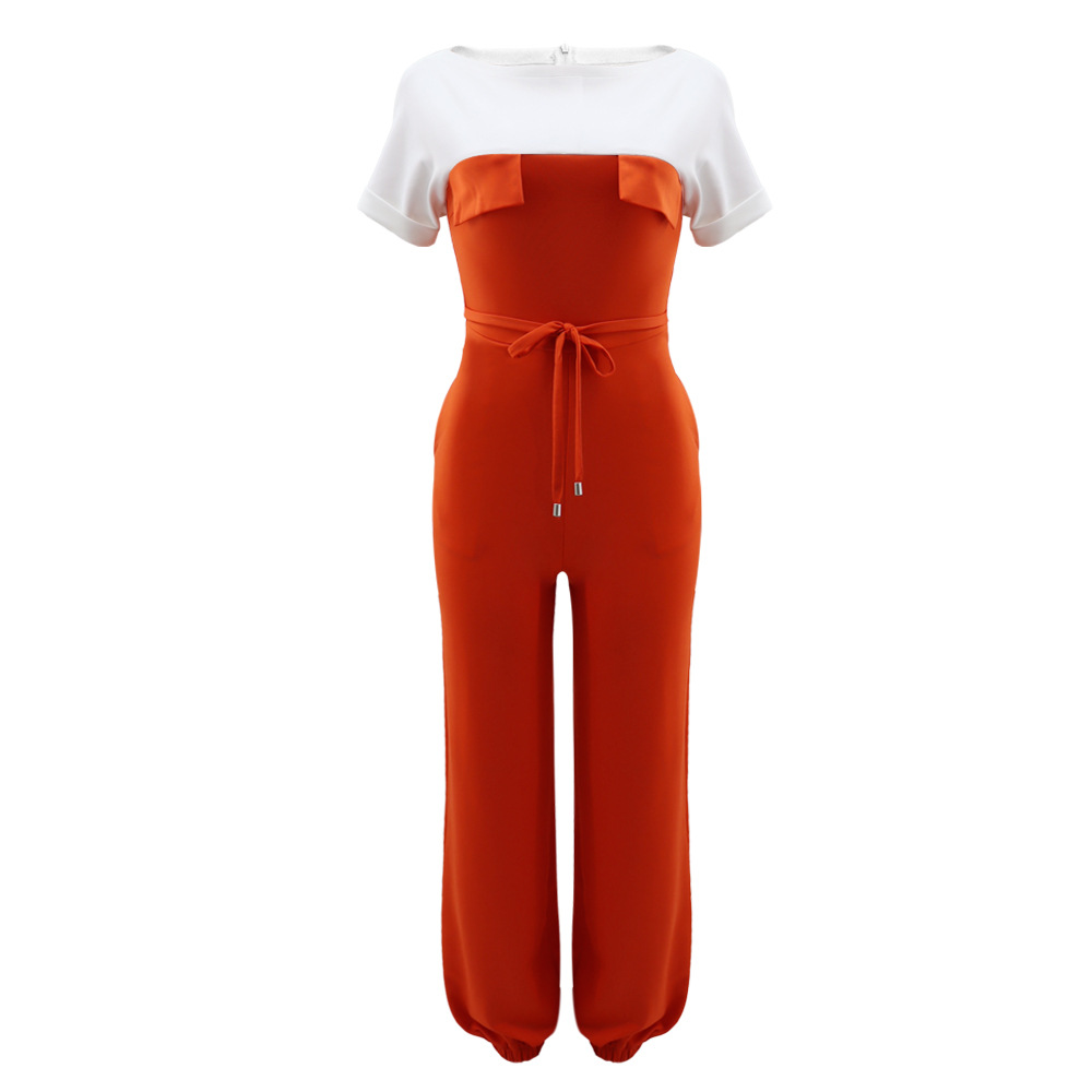 Slim Fit Waist Office Short Sleeve Color Matching Leggings Tapered Jumpsuit