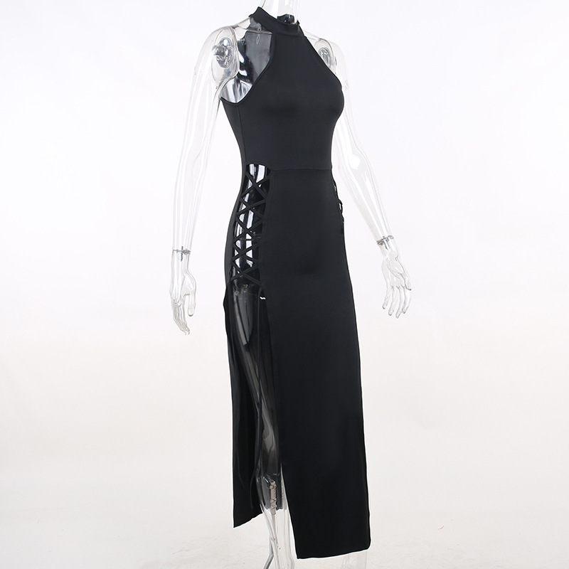 Slim Slimming Dress Halter Hollow Out Cutout Double Slit Dress