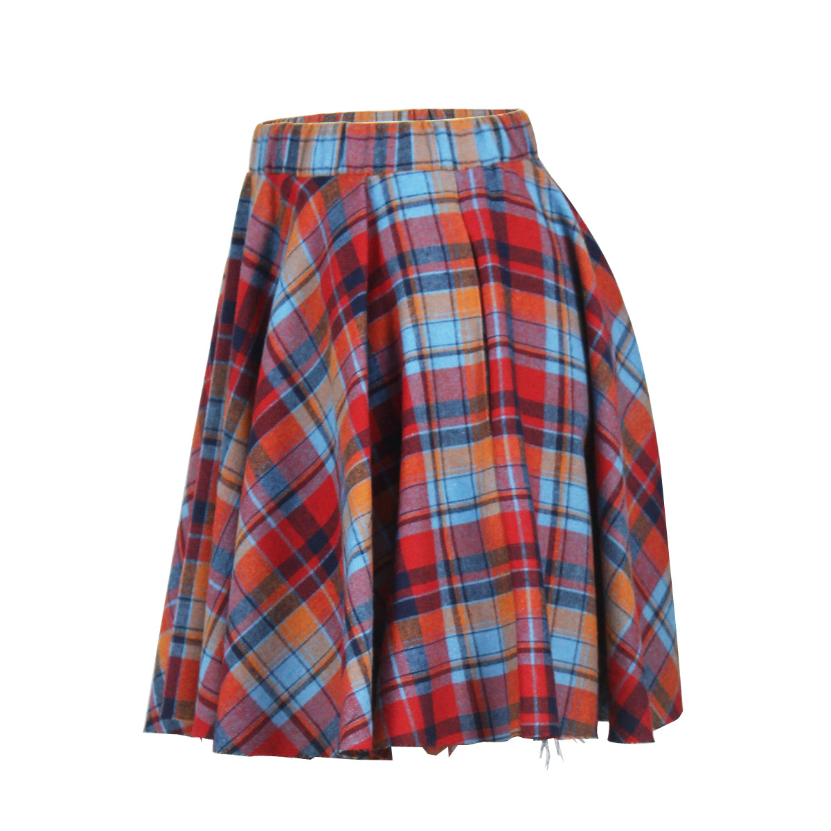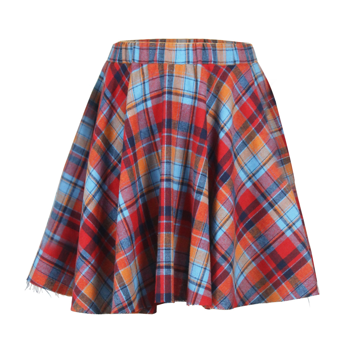 Slit Raw Cloth Cotton Plaid Skirt Nightclub Elastic Mini Skirt