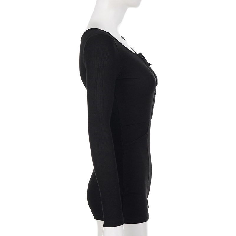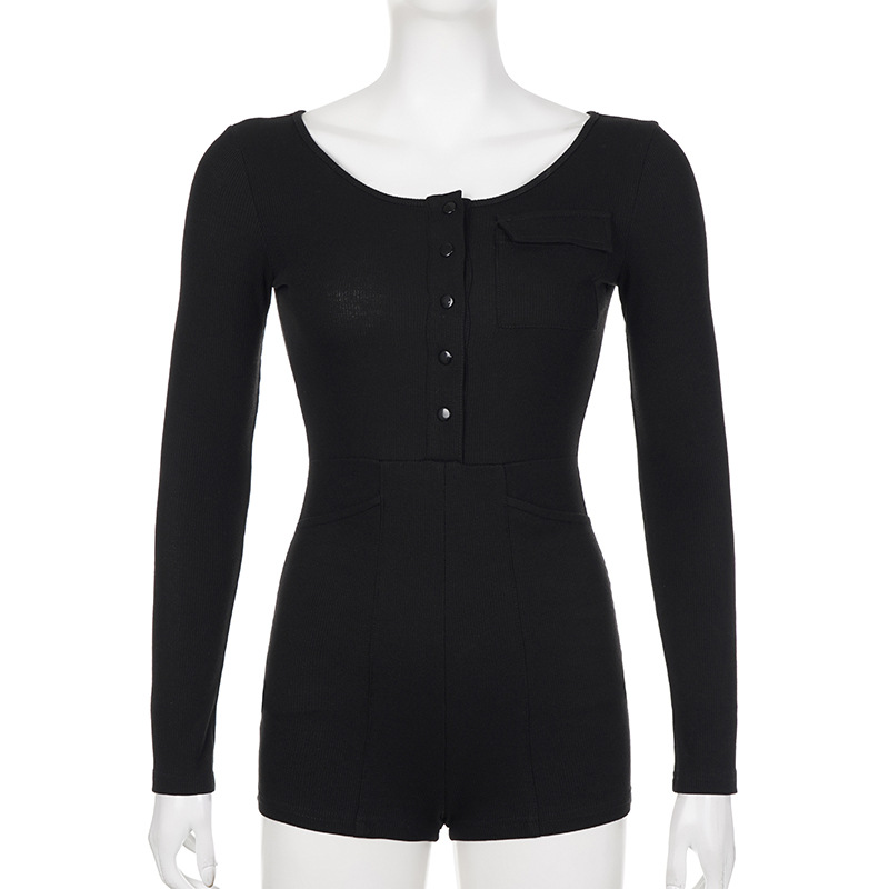 Solid Color Casual Pocket Rib Stitching Long Sleeve Romper Early