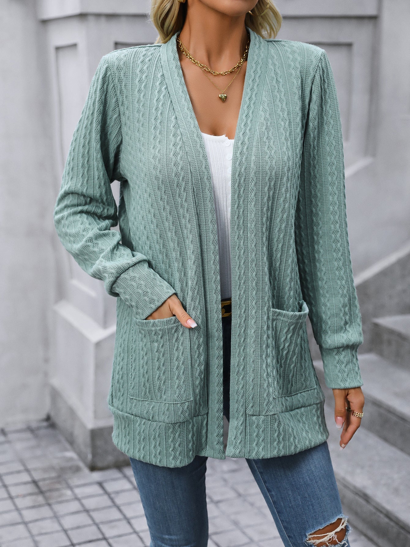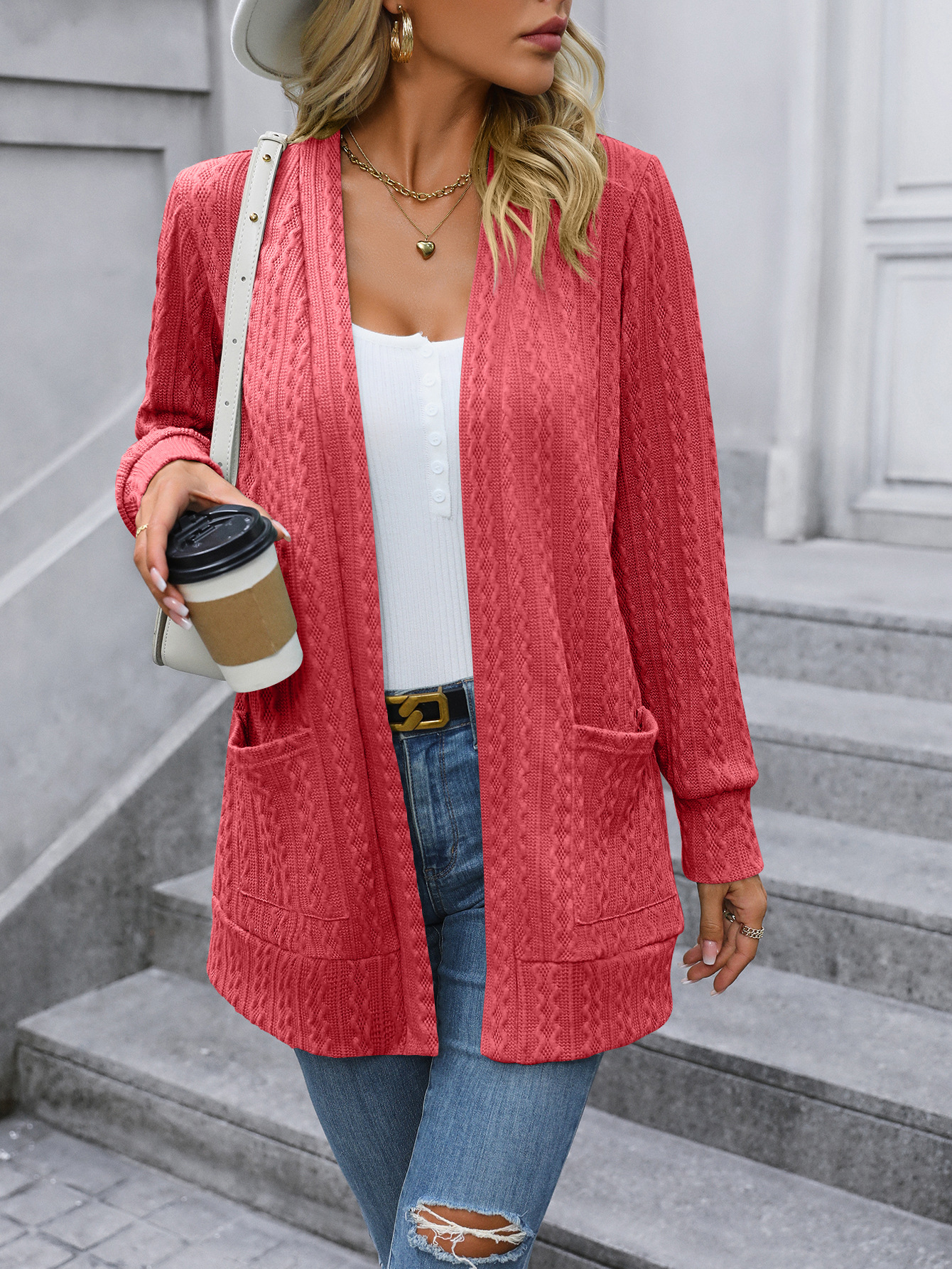 Solid Color Loose Shawl Mid Length Cable Knit Sweater Cardigan