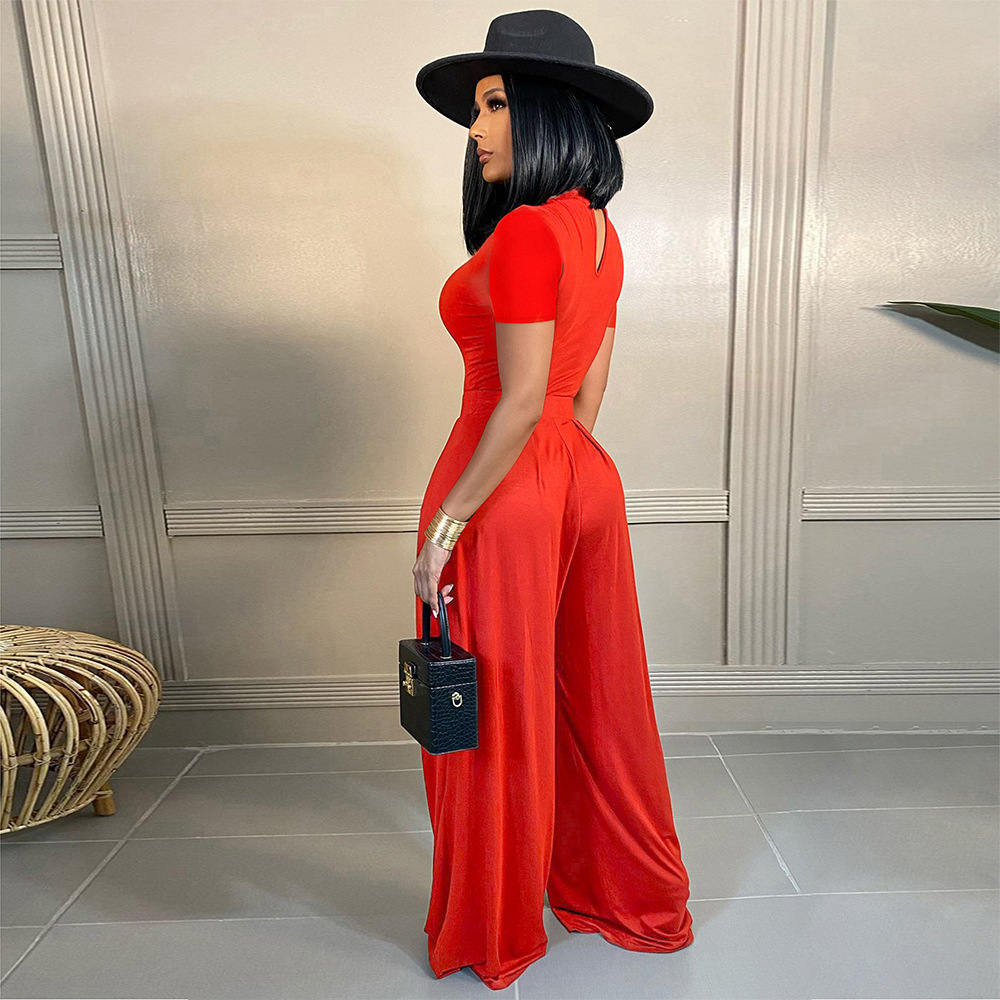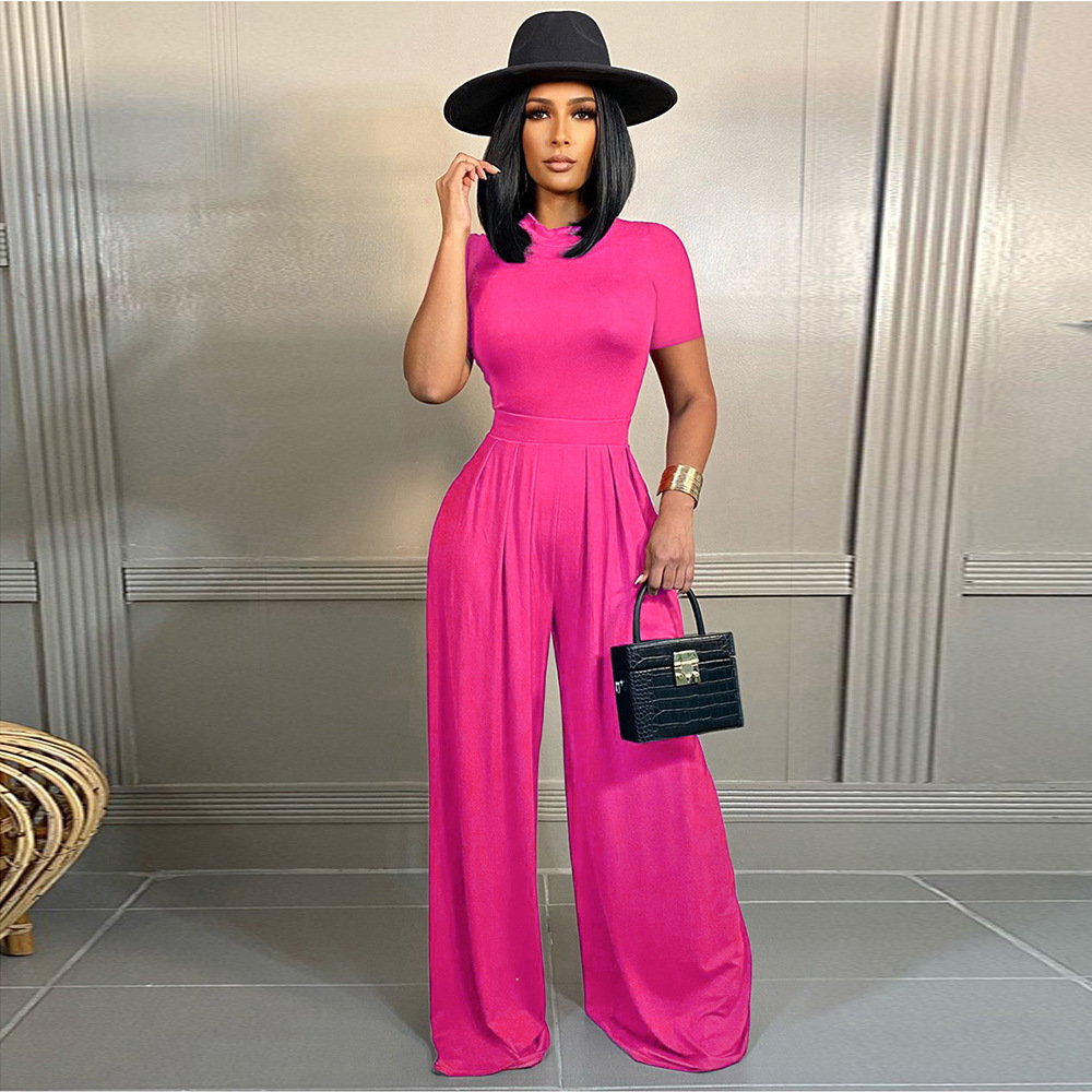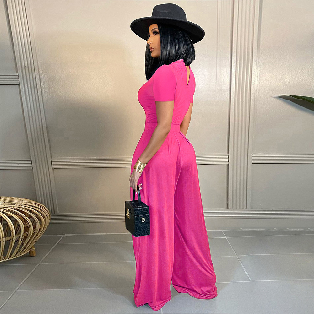 Solid Color Short Sleeve Rompers Wide Leg Pants Two Piece Set