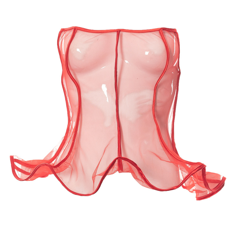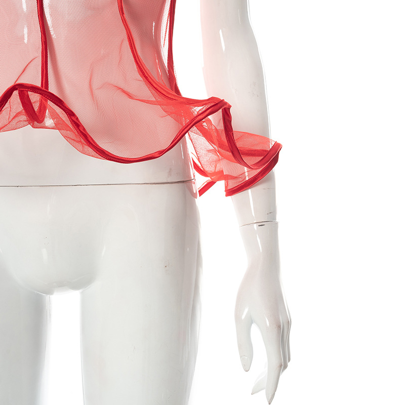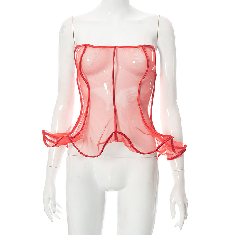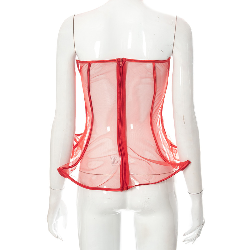 Solid Color Sleeveless Cardigan Zipper off Shoulder Mesh Transparent Waist
