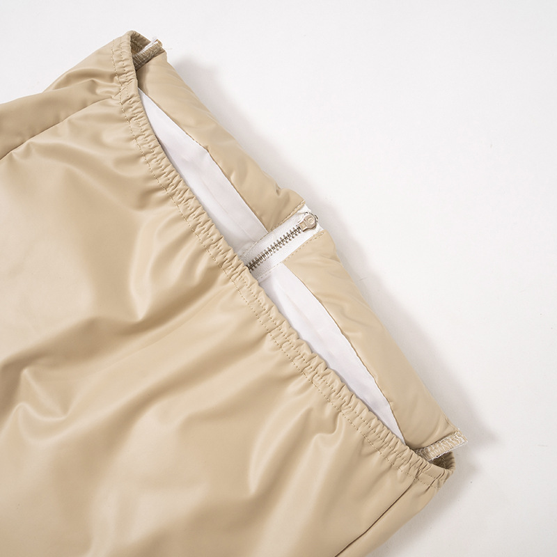 Solid Color Wrapped Chest Tight Cotton Padded Jacket Faux Leather Shirt