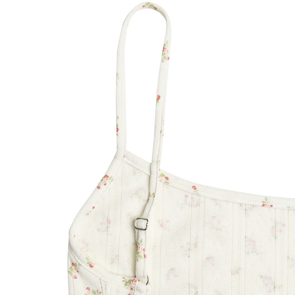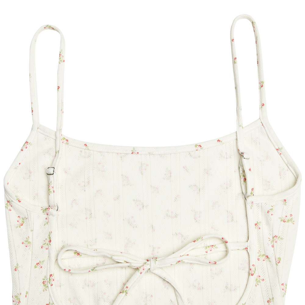 Spaghetti Strap Floral Print Bottoming Shirt Backless Lace up Romper