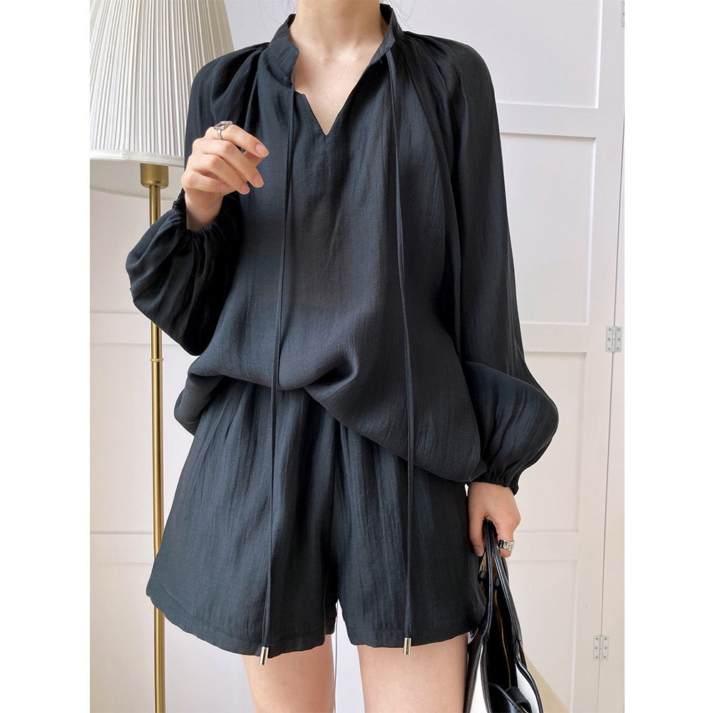 Sports Casual Lace-up Long Sleeve Sun Protection Wide Leg Shorts Suit Two-Piece Set