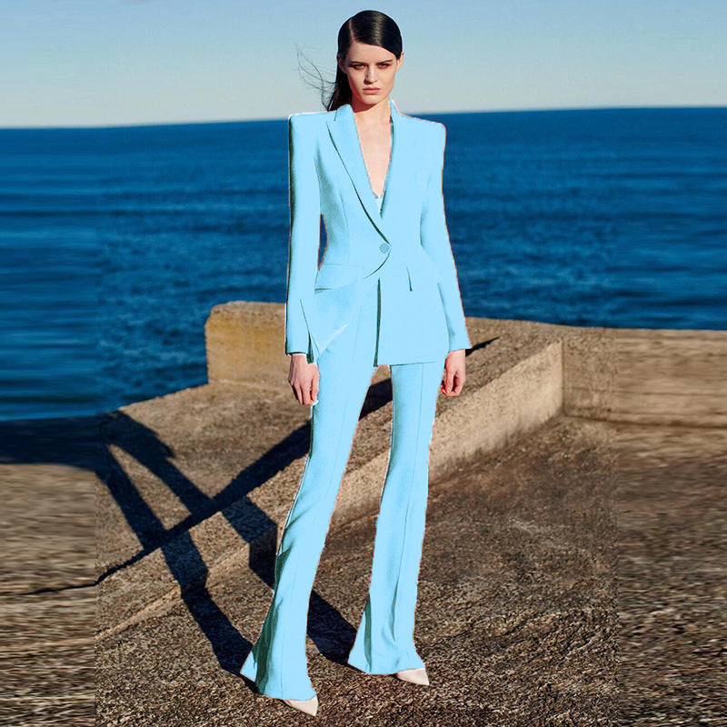 Star Business Wear One Button Cloth Cover Mid Length Suit Bell Bottom Pants Suit Two Piece Suit