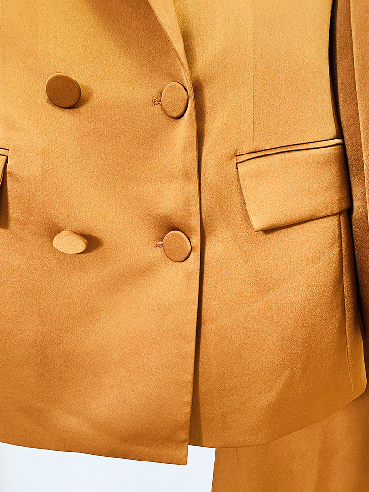 Star Double Breasted Spinning Satin Set Wide Leg Pants Suit Two Piece Blazer Suit Set