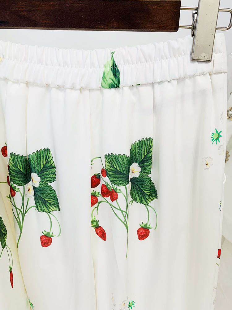 Star Elegant Strawberry Print Slim Fit Blazer Trousers Suit Two Piece Set