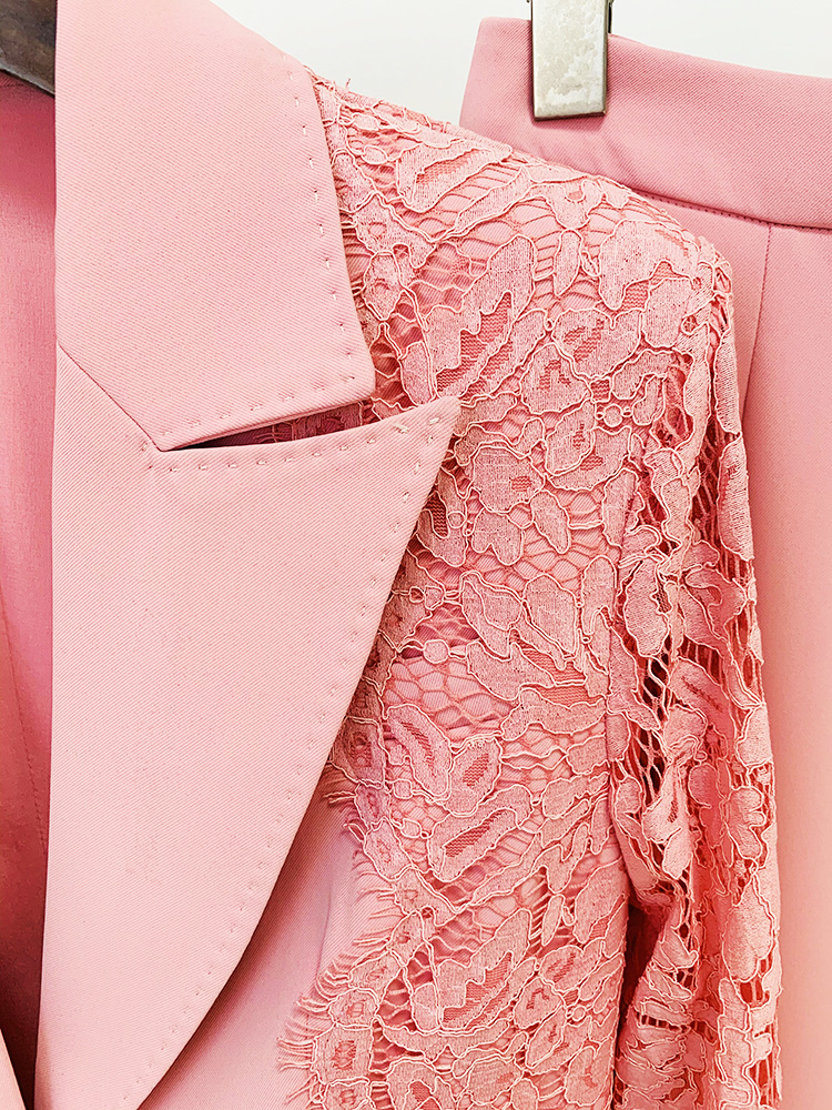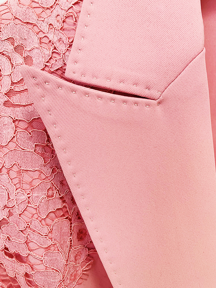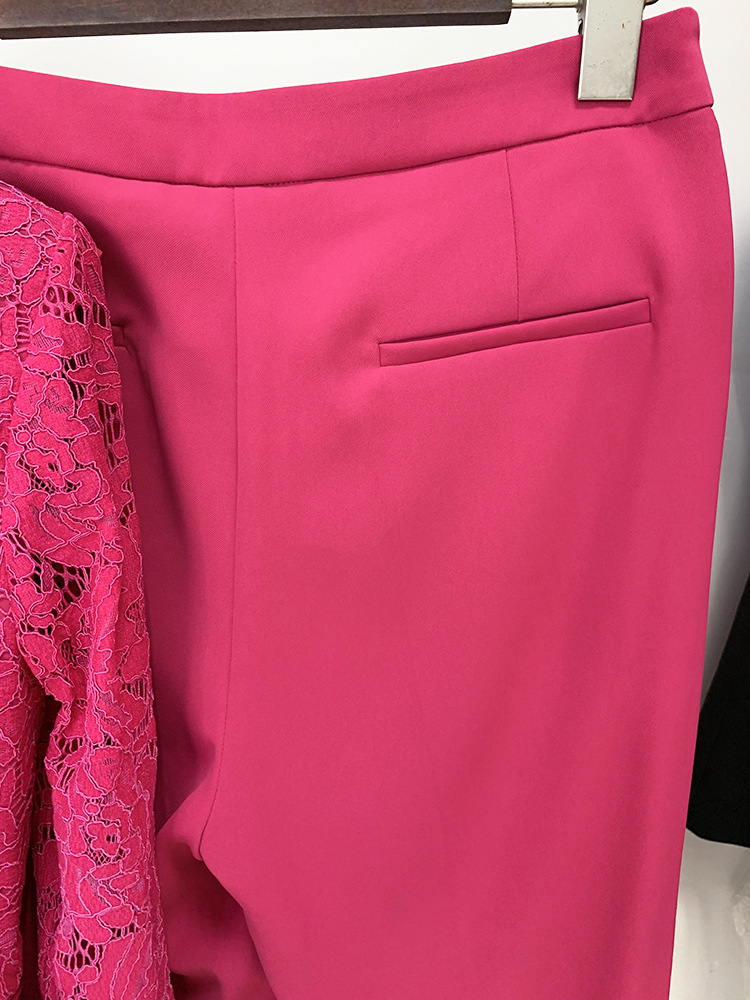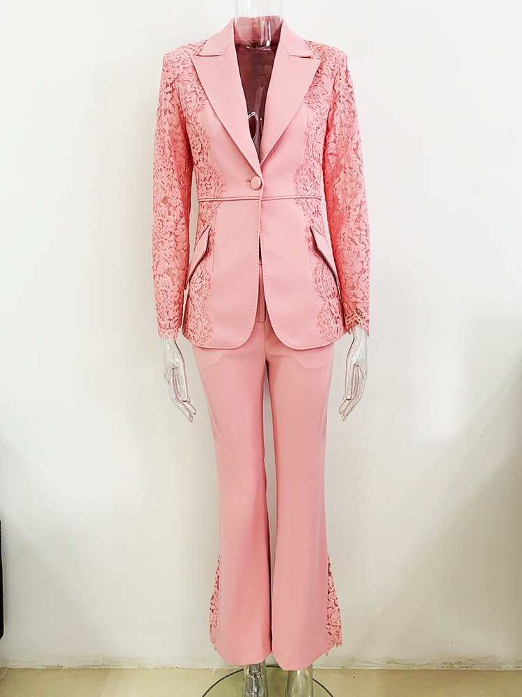 Stars Lace Slim Fit Patchwork One Button Suit Flared Pants Suit Two Piece Set