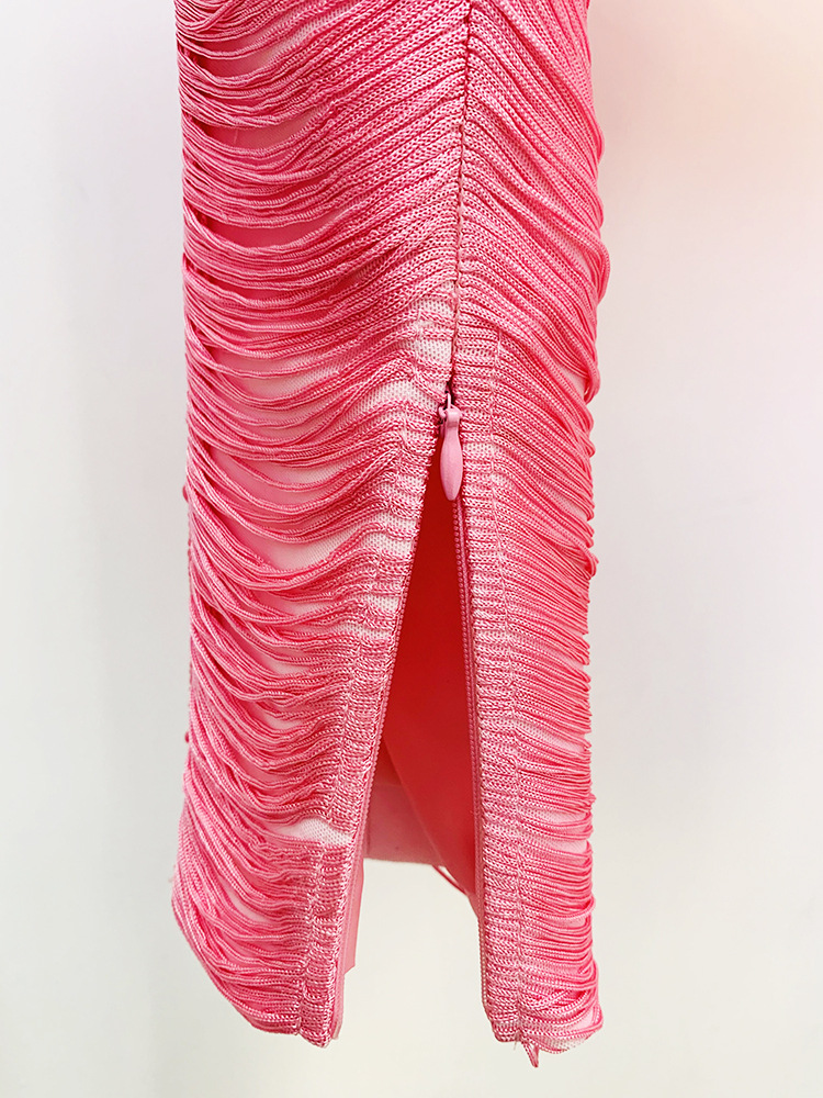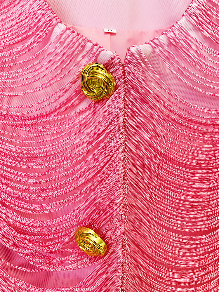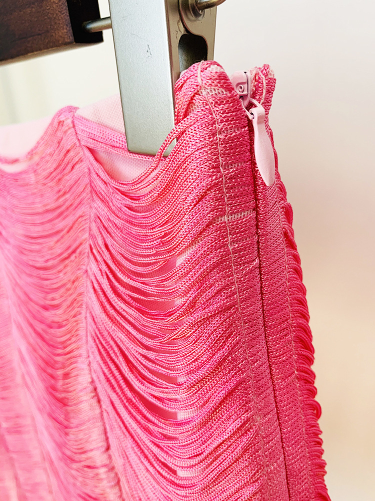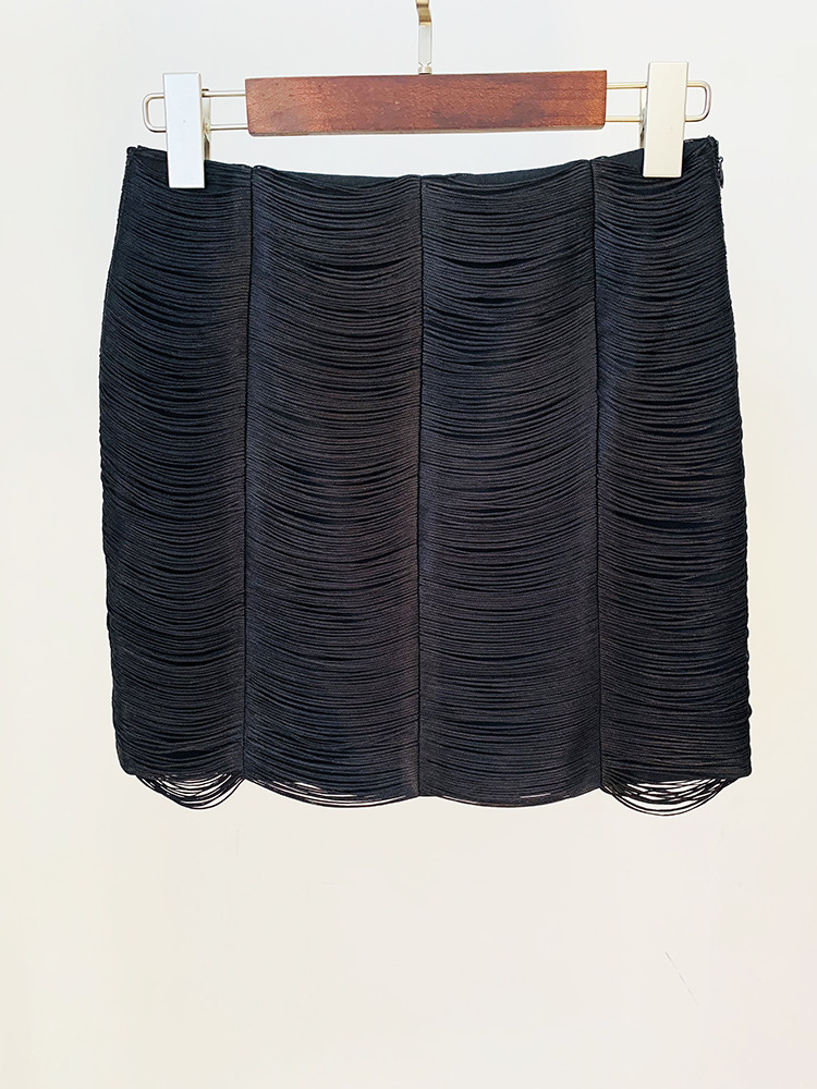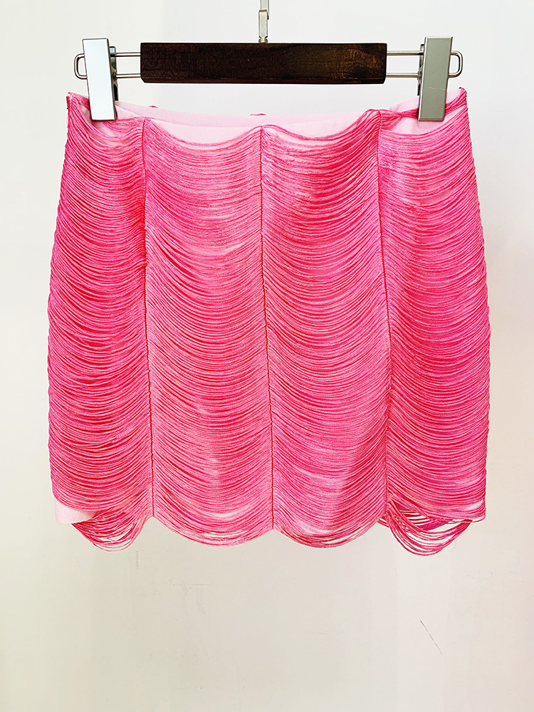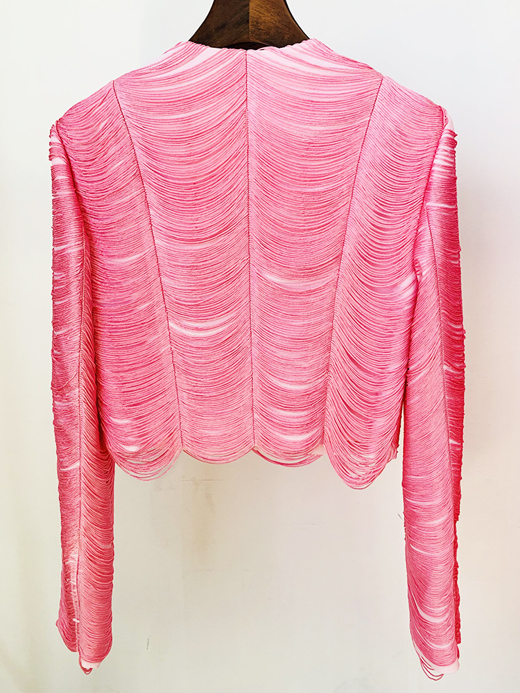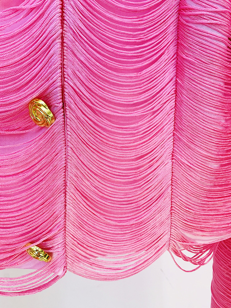 Stars Tassel Short Jacket Skirt Set Pink Black