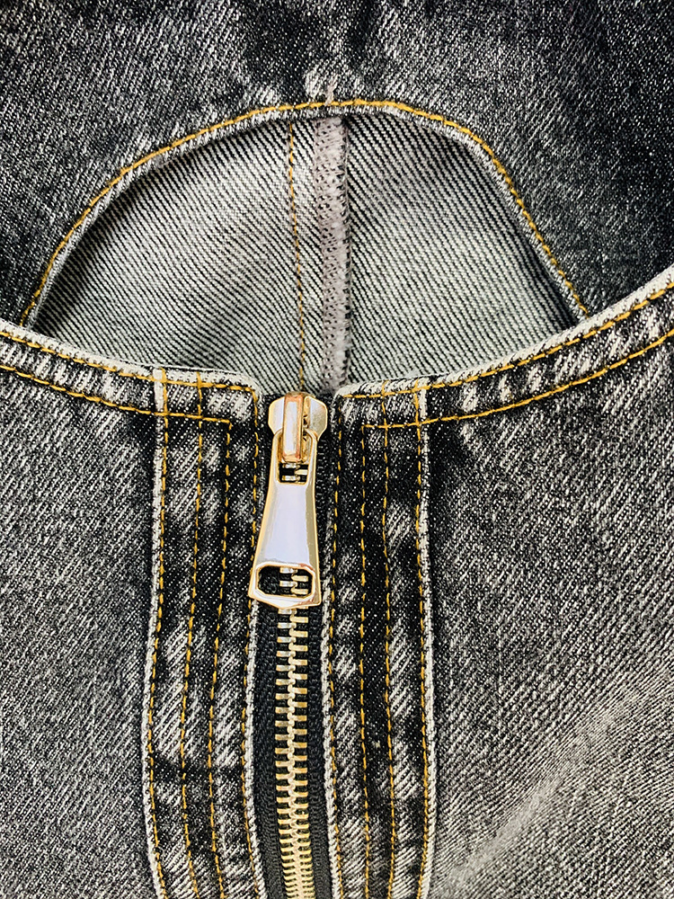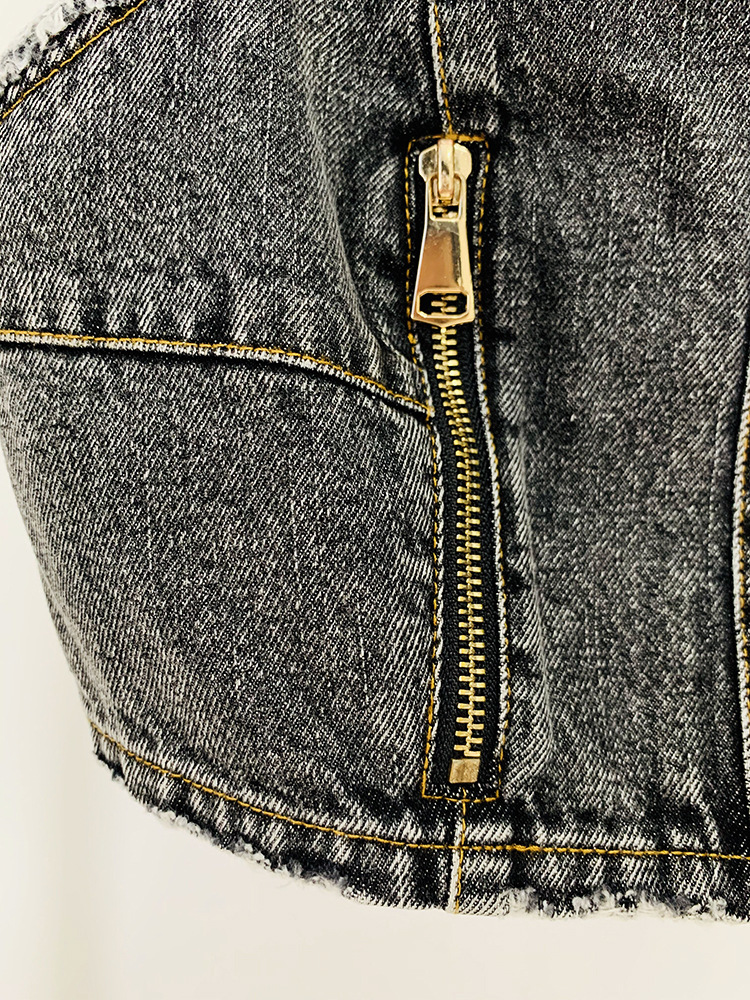 Stars Zipper Denim Vest Top Denim Shorts Suit Two-Piece Set
