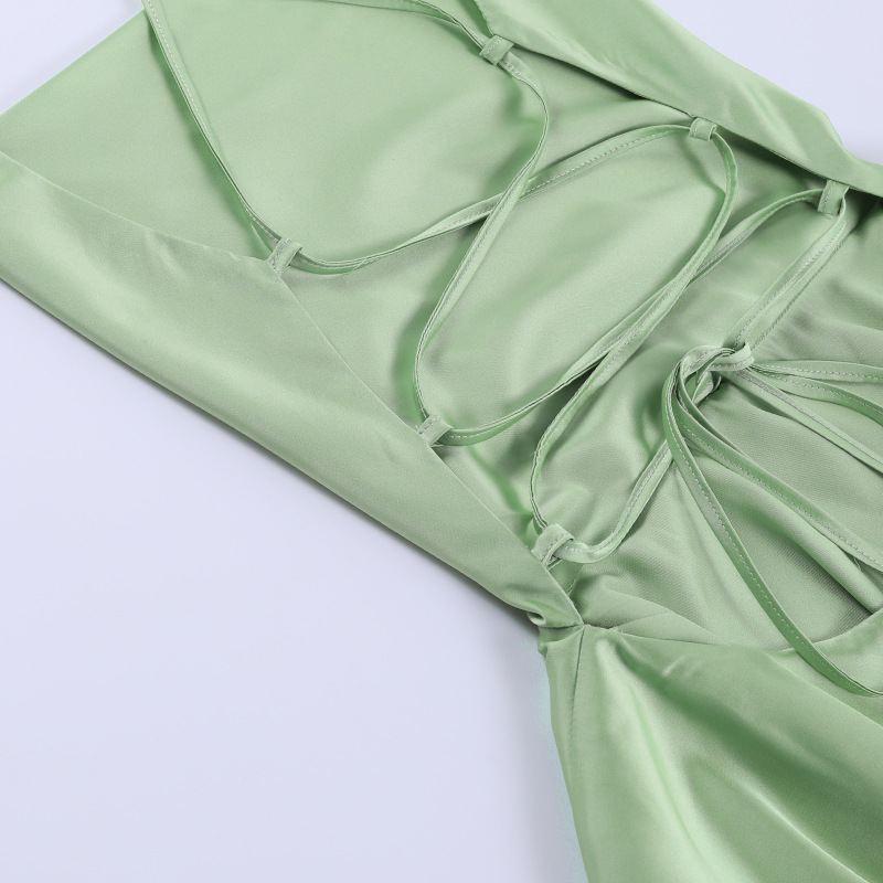 Strap Satin Backless Lace up A line Dress Elegant Socialite