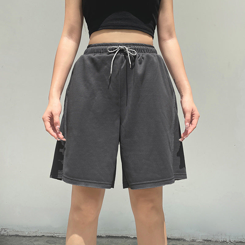 Street Drawstring Elastic Waist Straight Split Casual Pants Outdoor All Matching Slimming Sweatshirt Shorts