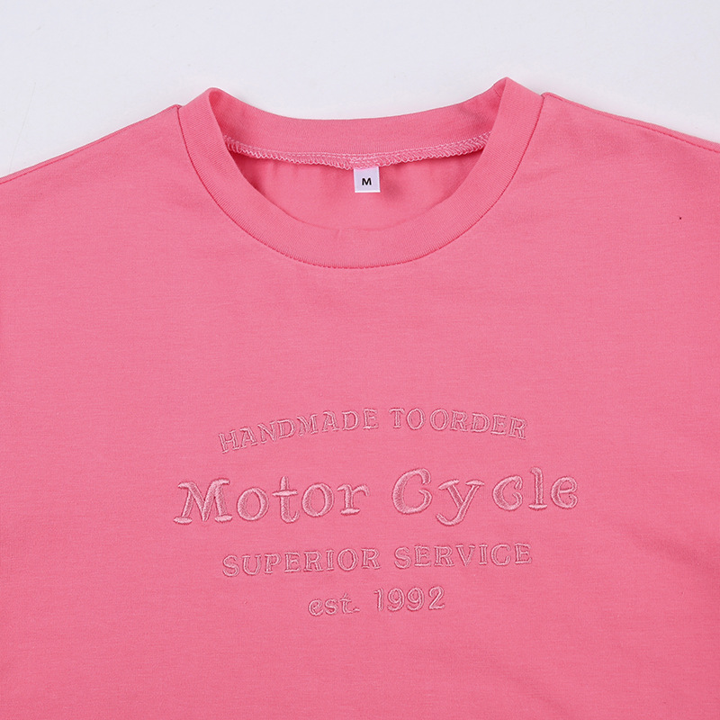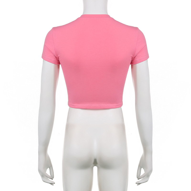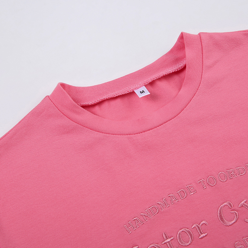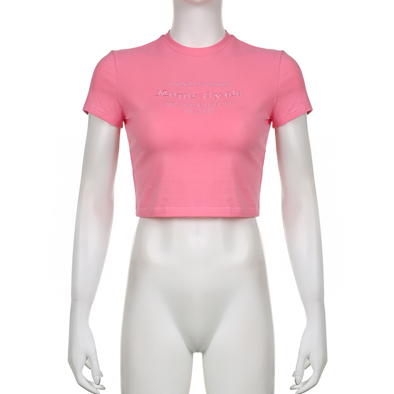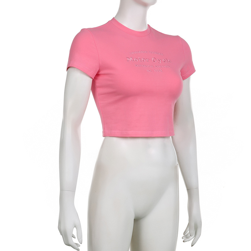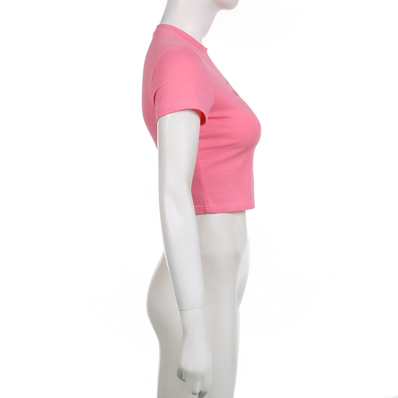 Street Hipster Basic Letters Embroidered Slim Cropped T Shirt Top