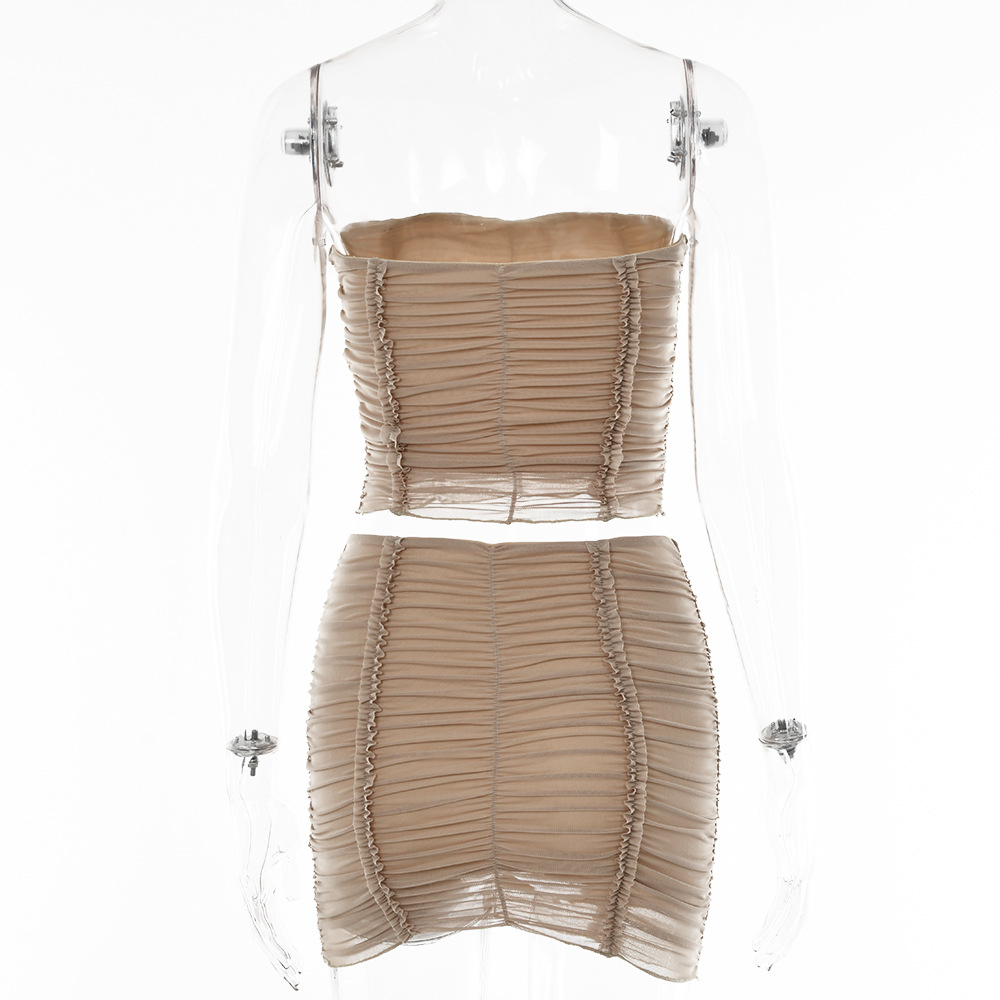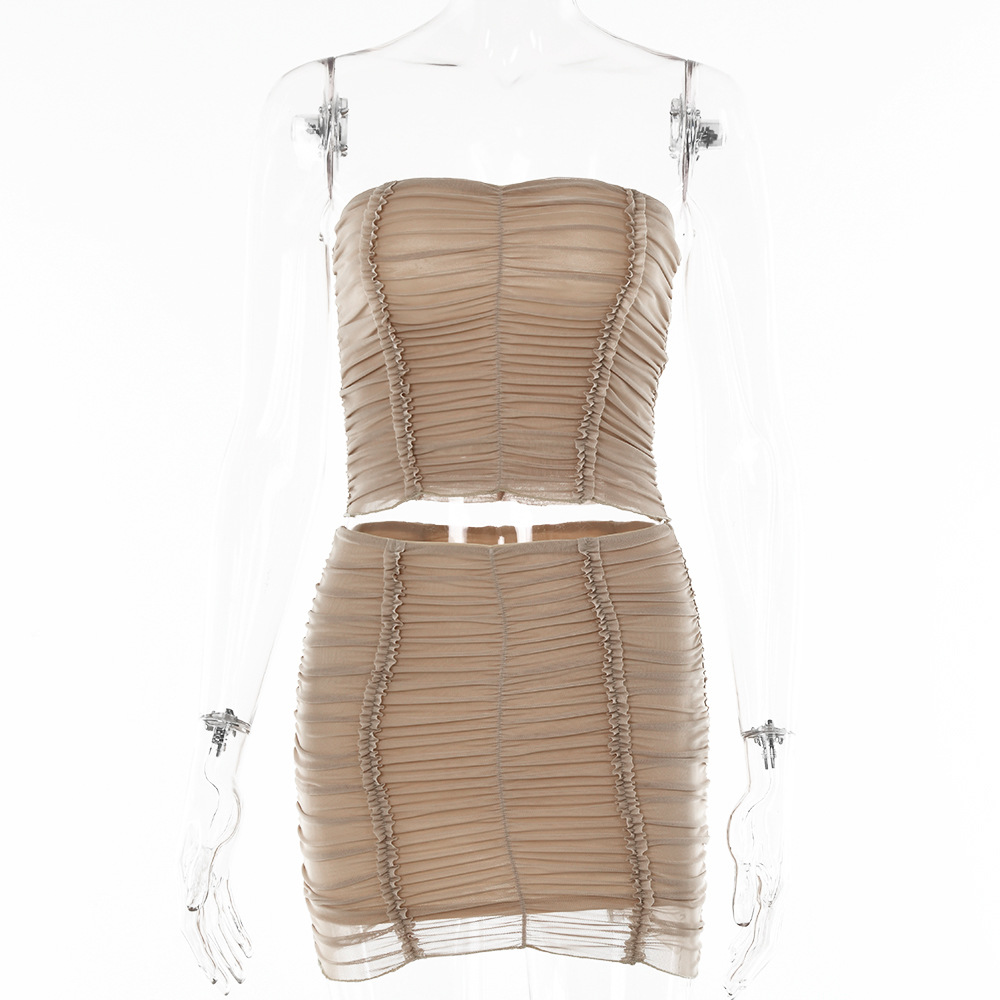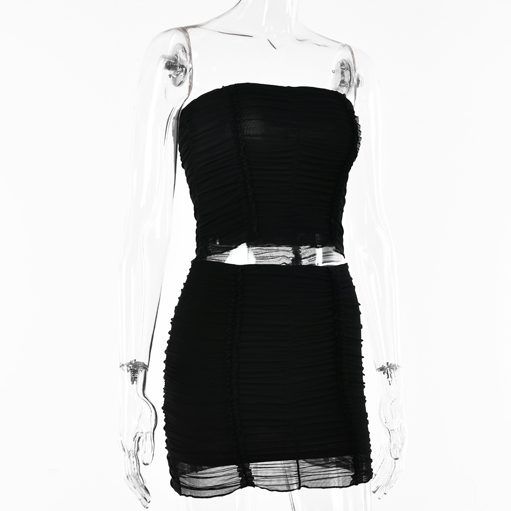 Street Shooting Tube Top Short Vest Two-Piece Set Sheer Mesh Skirt Outfit