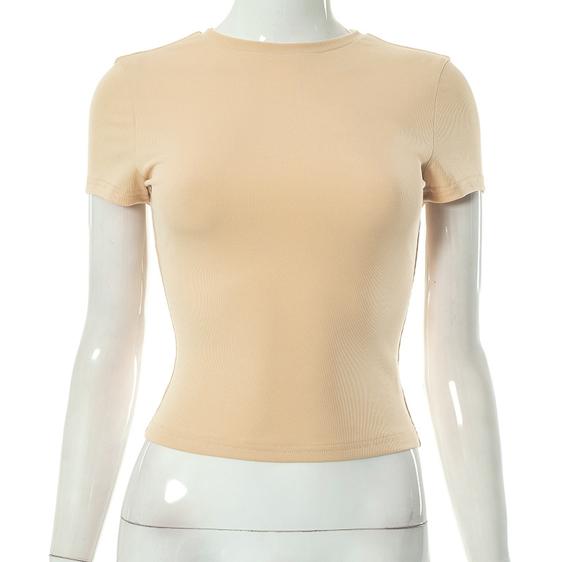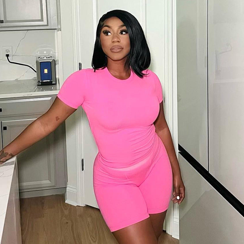 Street Solid Color Tight Short Sleeved Shirt Shorts Set
