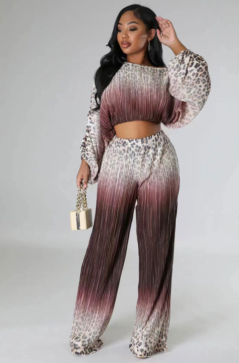 Suit Printed Wear Casual Long Sleeve Trousers Two Piece Set