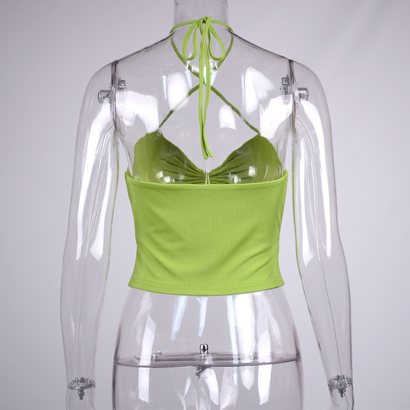 Sunken Stripe cropped Backless Sleeveless Vest Halter Top