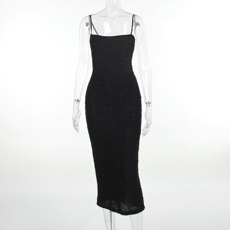 Suspenders Backless Thin Glittering Hollow Out Cutout Dress High Grade Dress