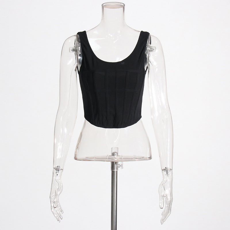 Suspenders Boning Corset Outer Wear Three Dimensional Tunic Belly Contracting Irregular Asymmetric Solid Color Vest