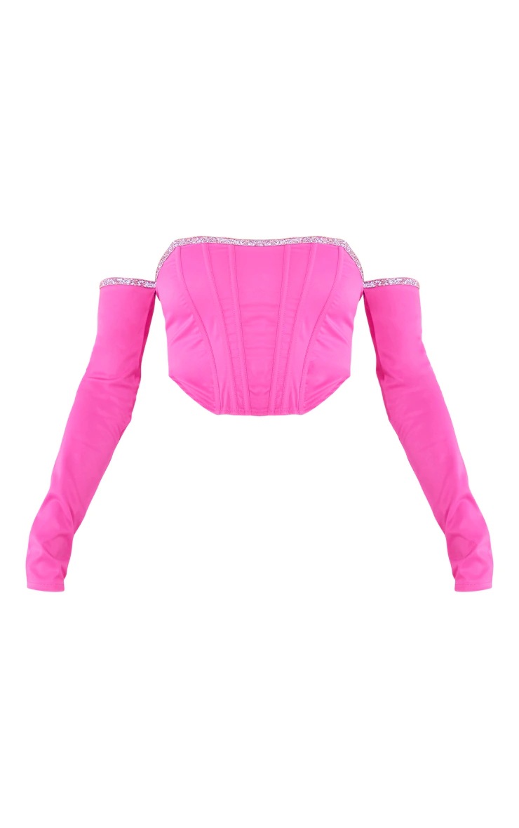 Sweet  Rhinestone Strip Solid Color Slim Fit Boning Corset Sleeve Chest Wrap