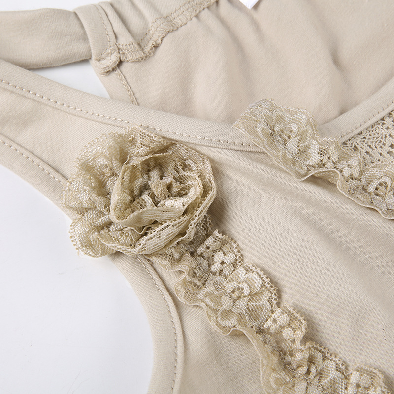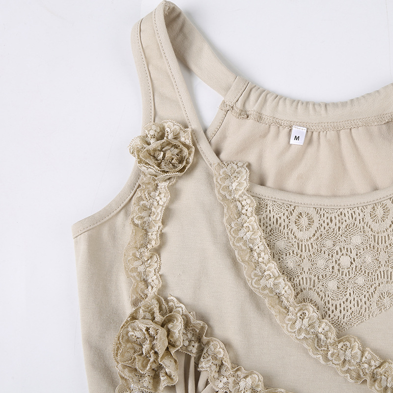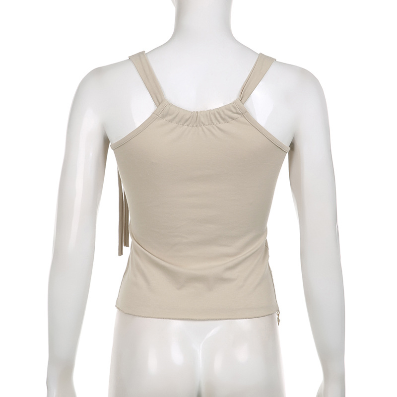 Tassel Lace Vest Solid Color Low Collar Spaghetti Straps Sleeveless Short Top