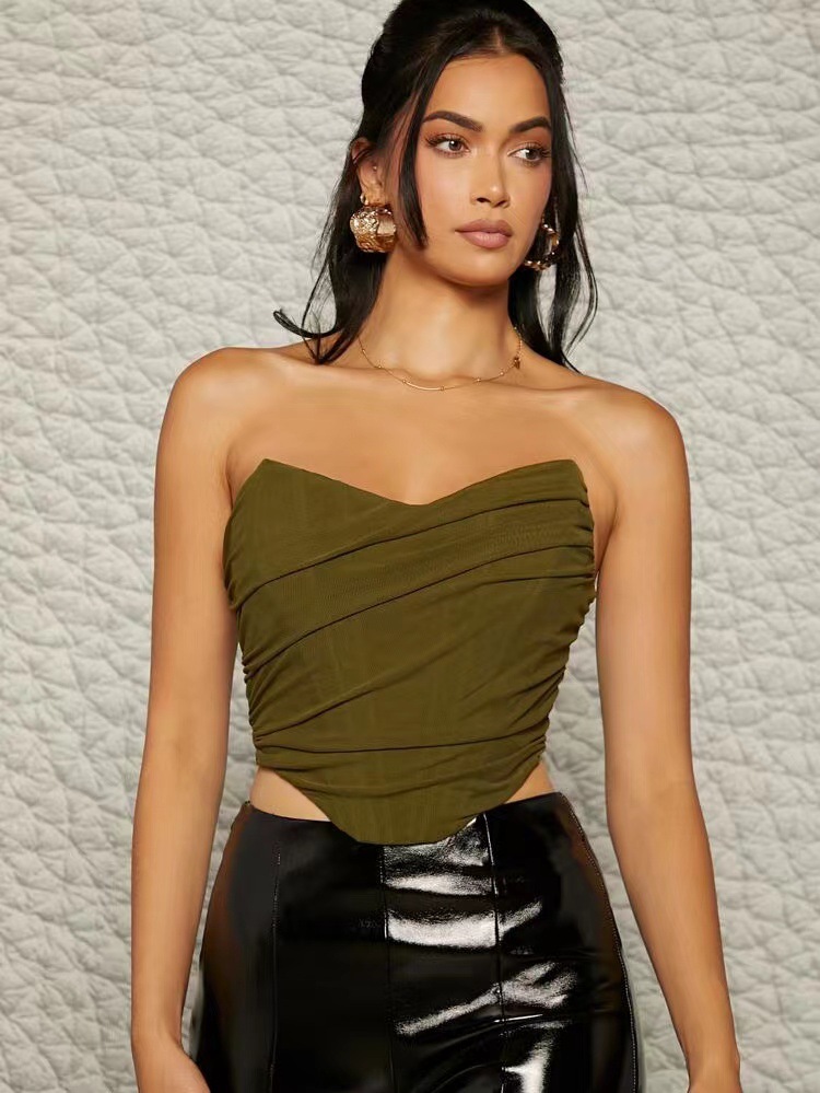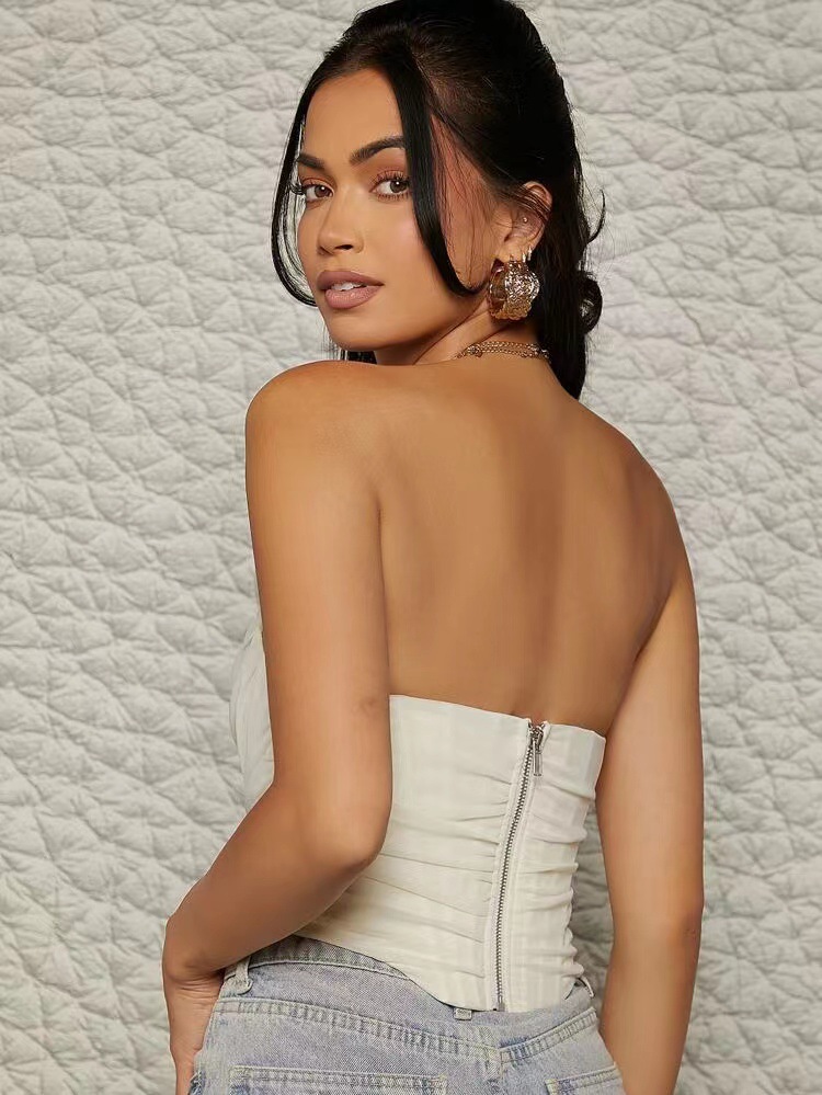 Trend Boning Corset Boning Corset Pleated Zipper Mesh Tube Top cropped Outfit Top