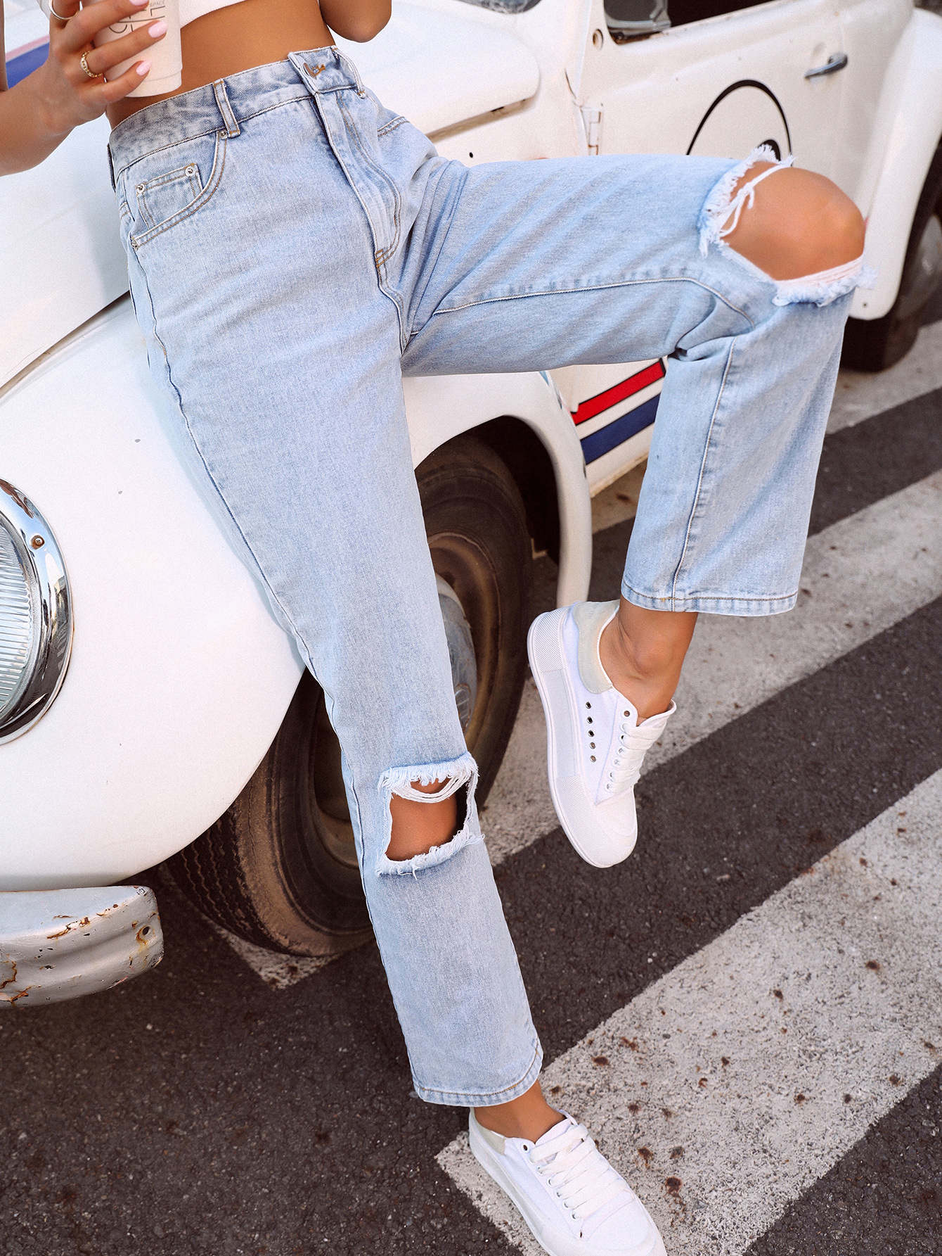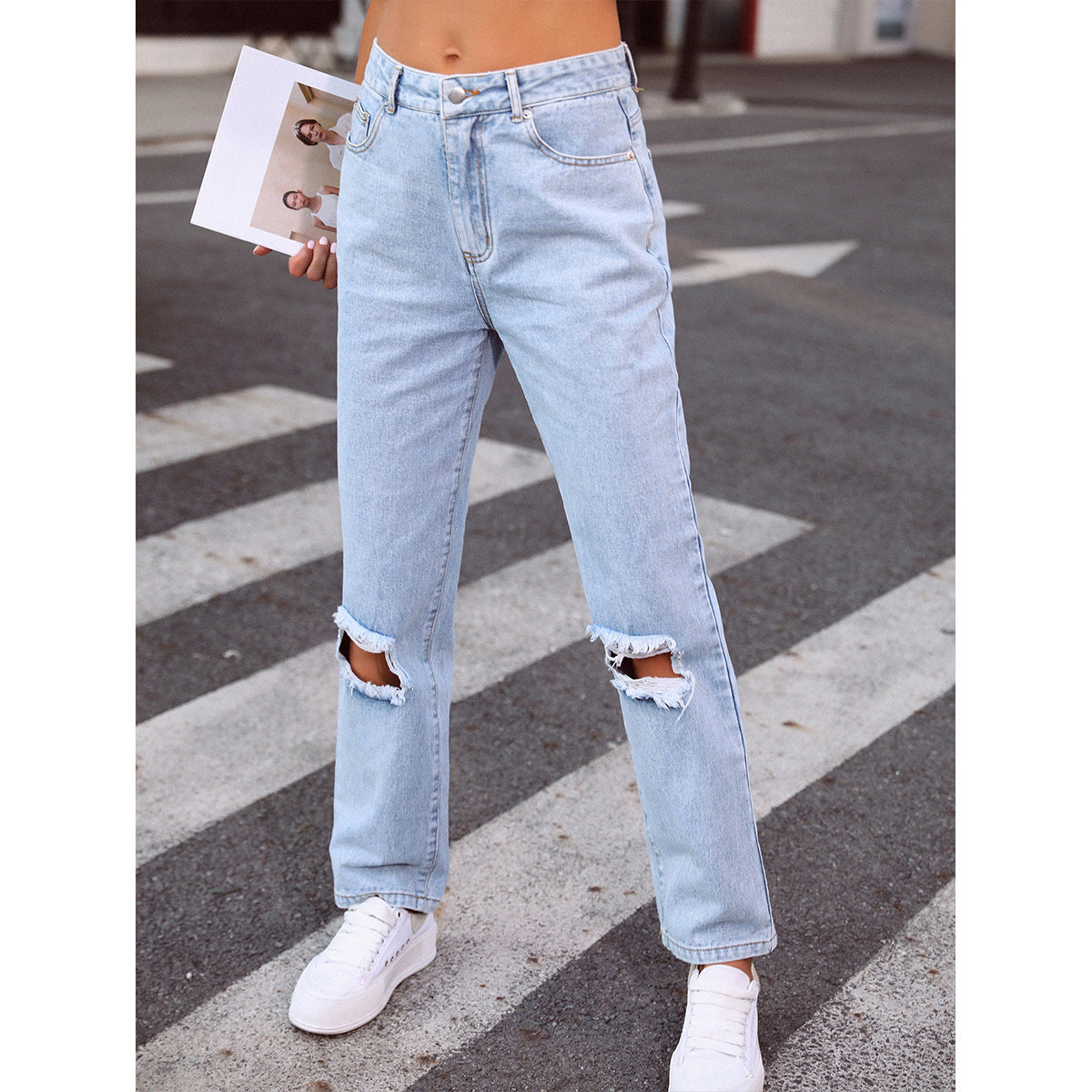 Trendy High Waist Wide Leg Loose Ripped Straight Denim Pants