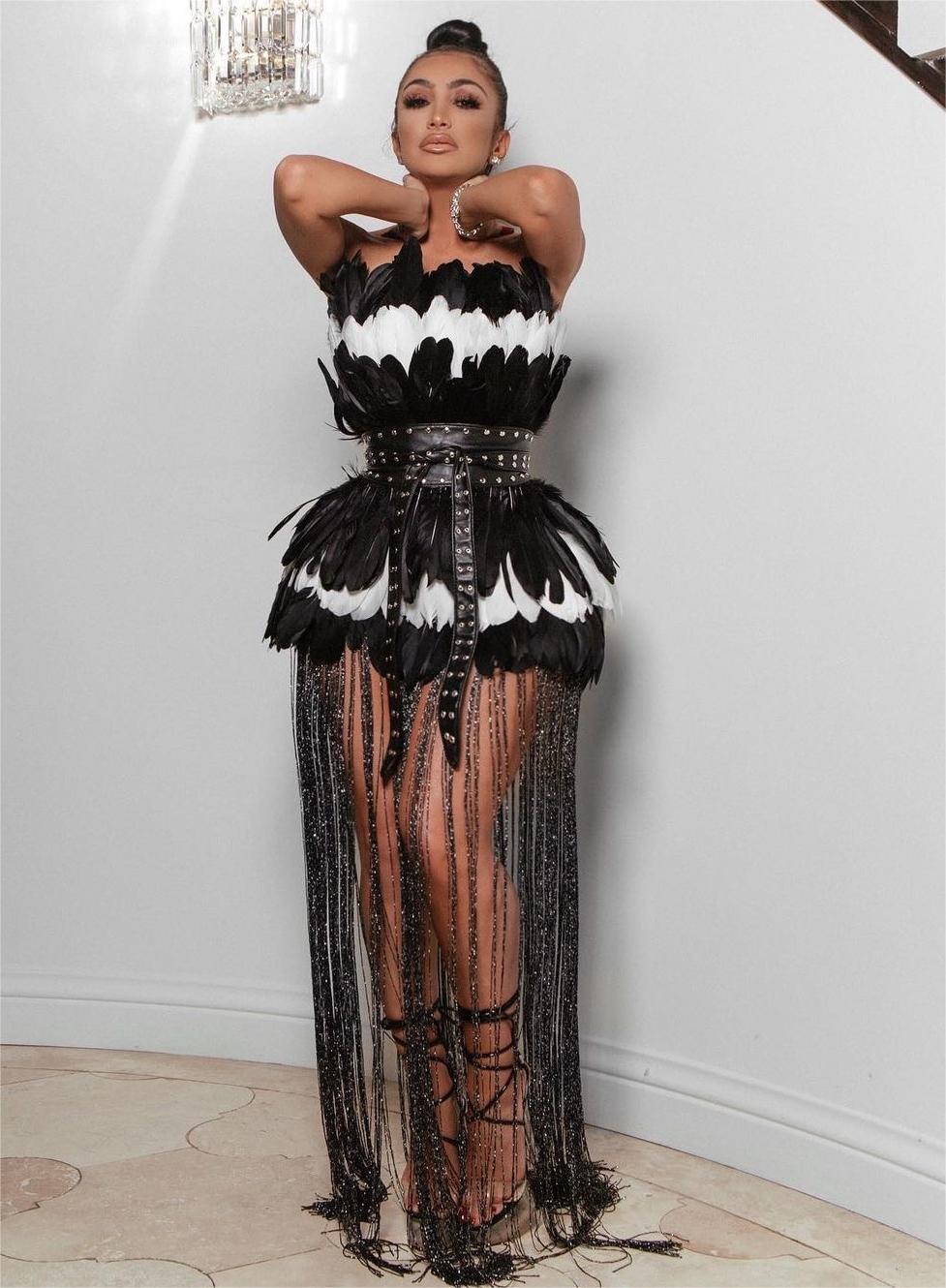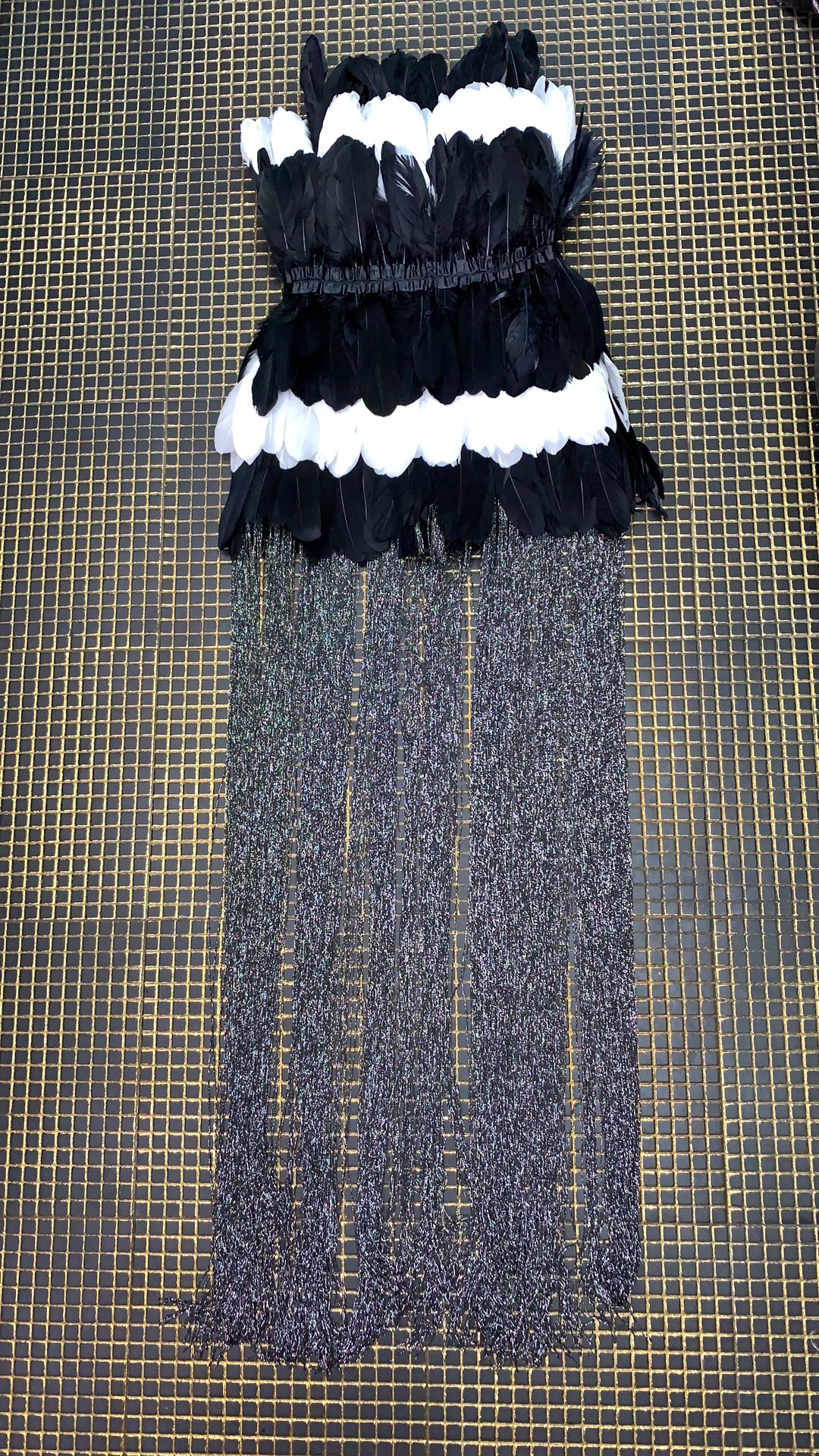 Tube Top Black White Feather Stitching Sleeveless Dress Waist Sequined Cocktail Party Dress