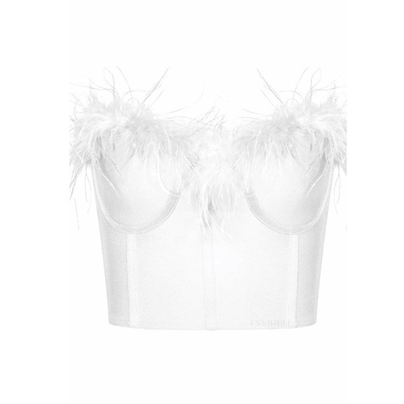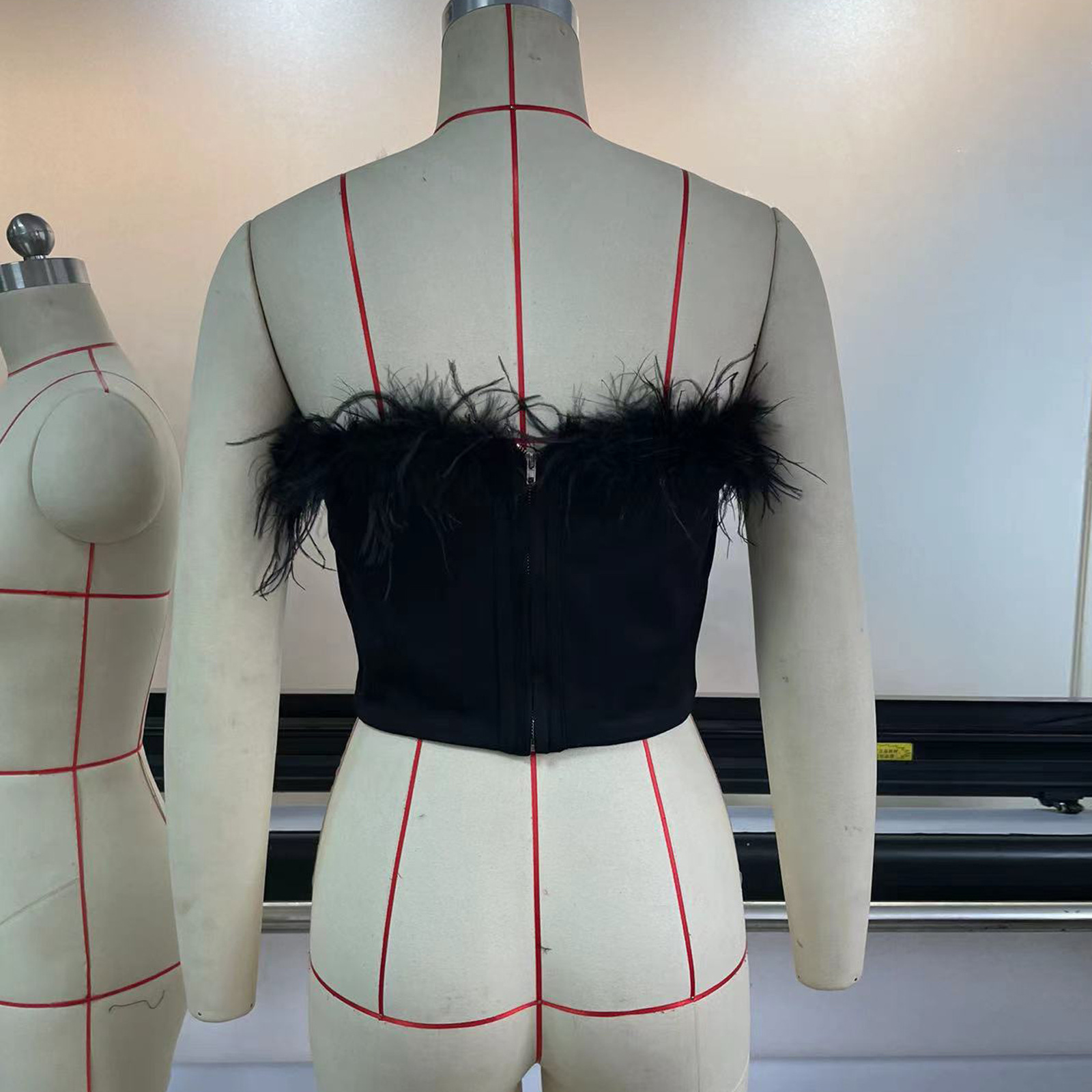 Tube Top Furry Stitching Top Sleeveless Short Slim Vest
