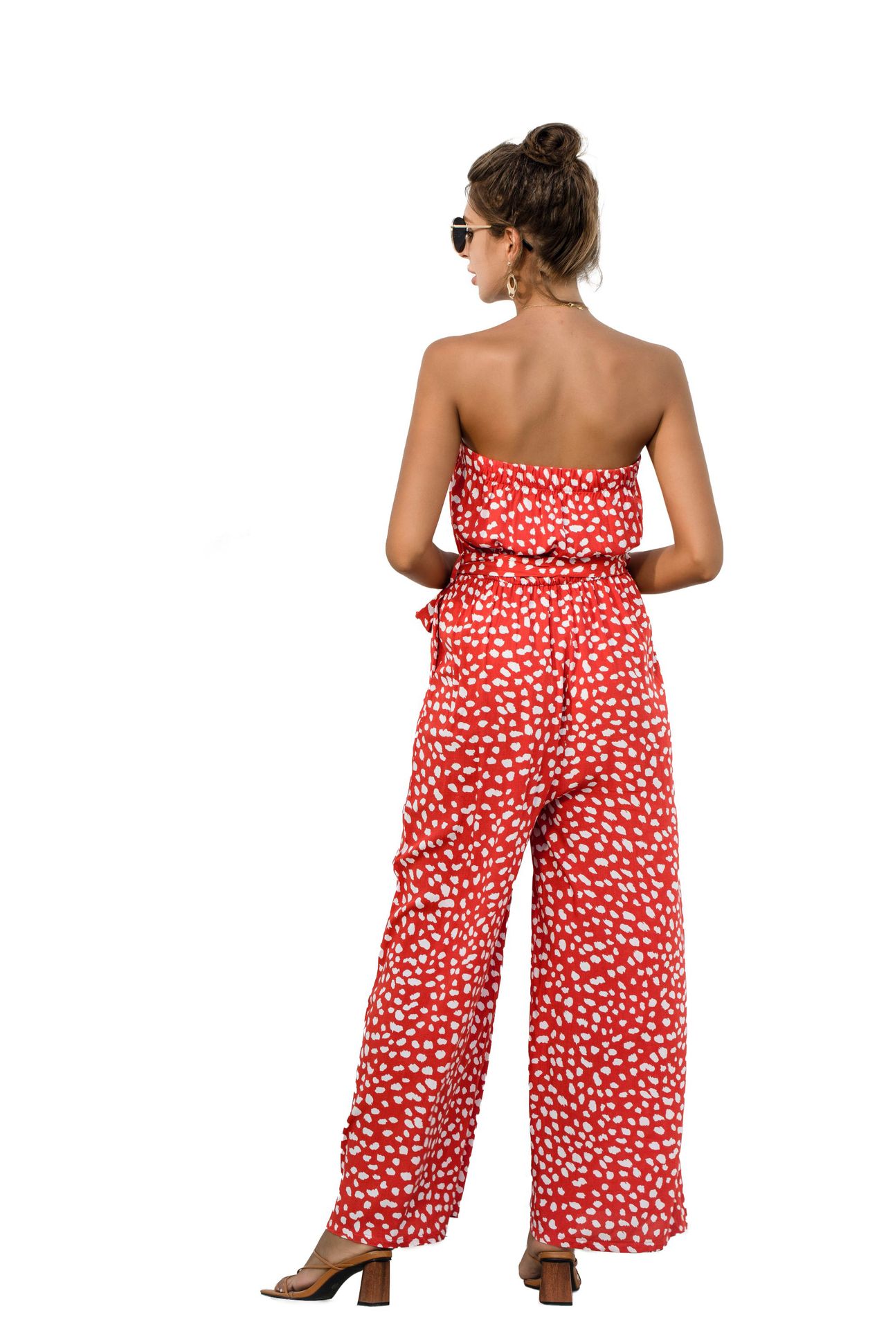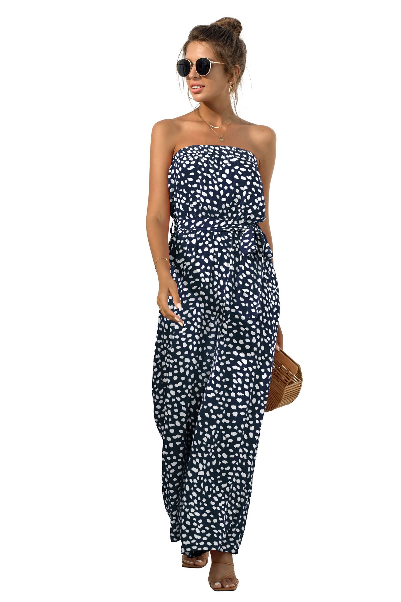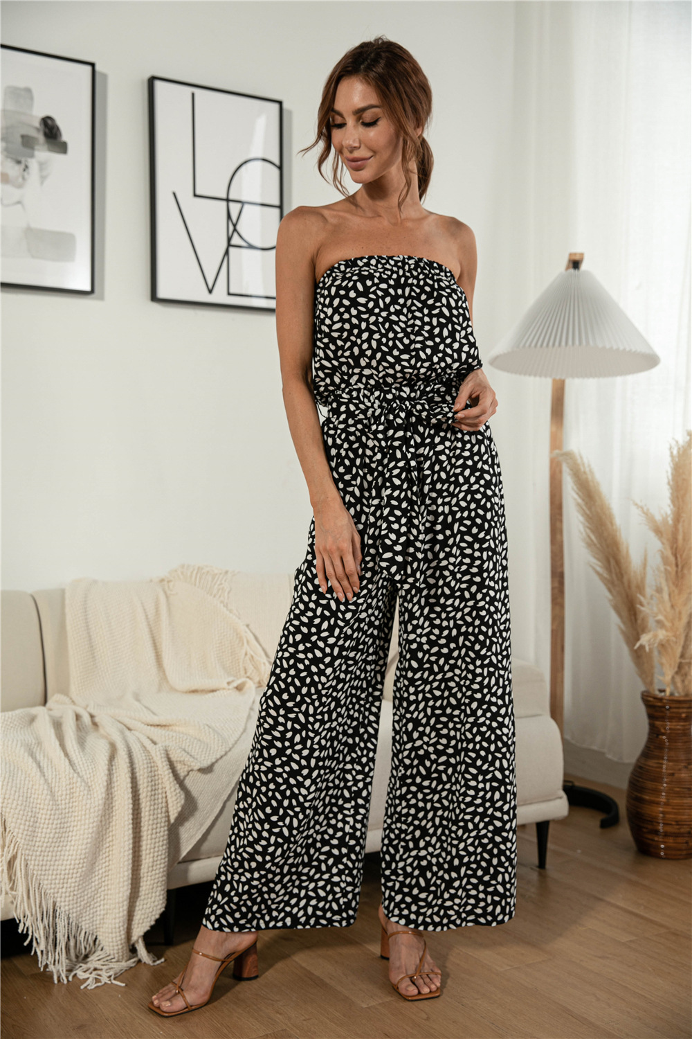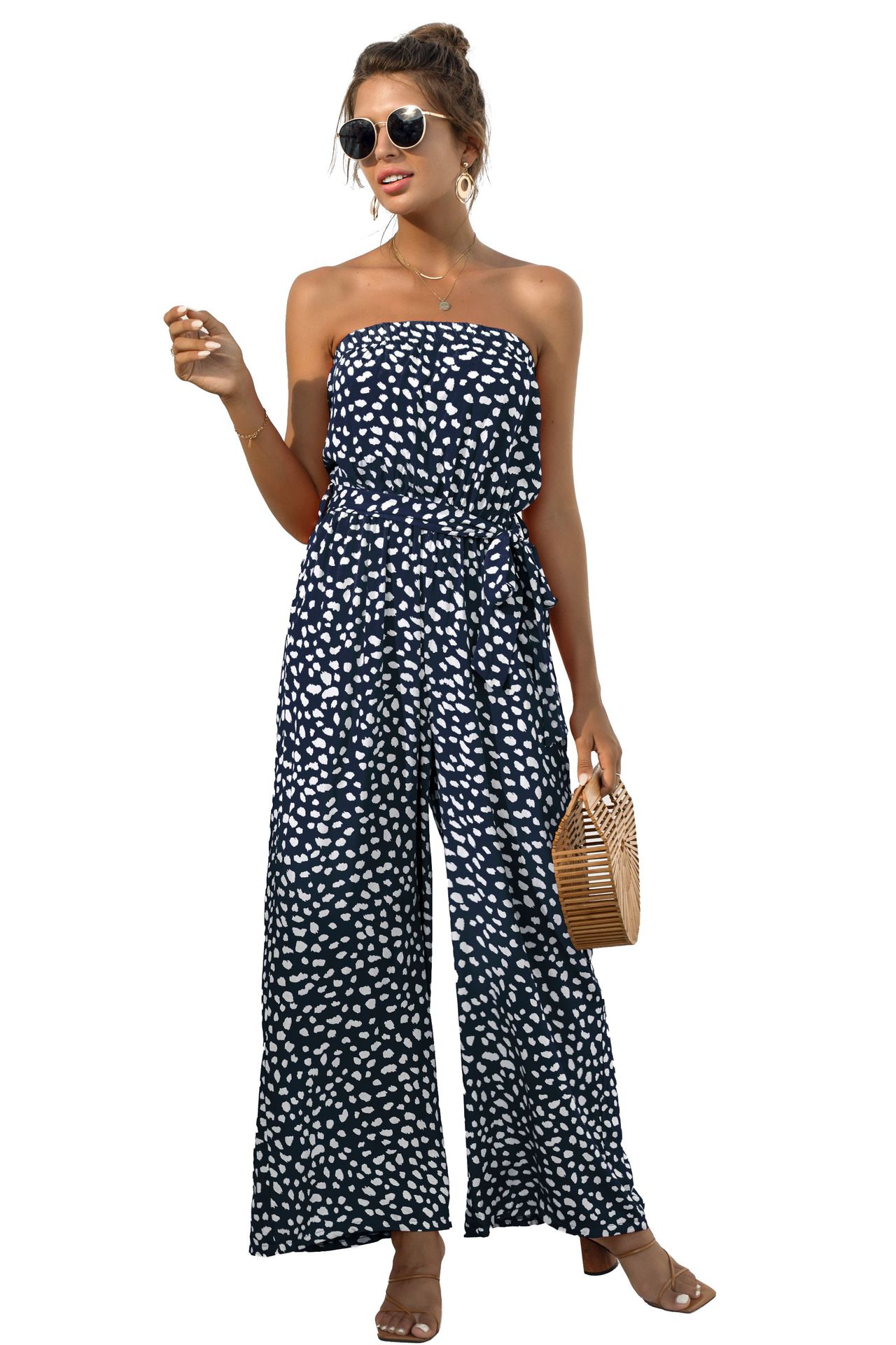 Tube Top Heart-Shaped Dot Print Lace-up Wide-Leg Jumpsuit