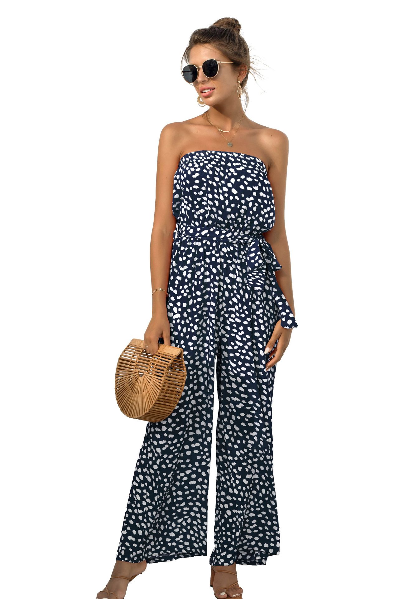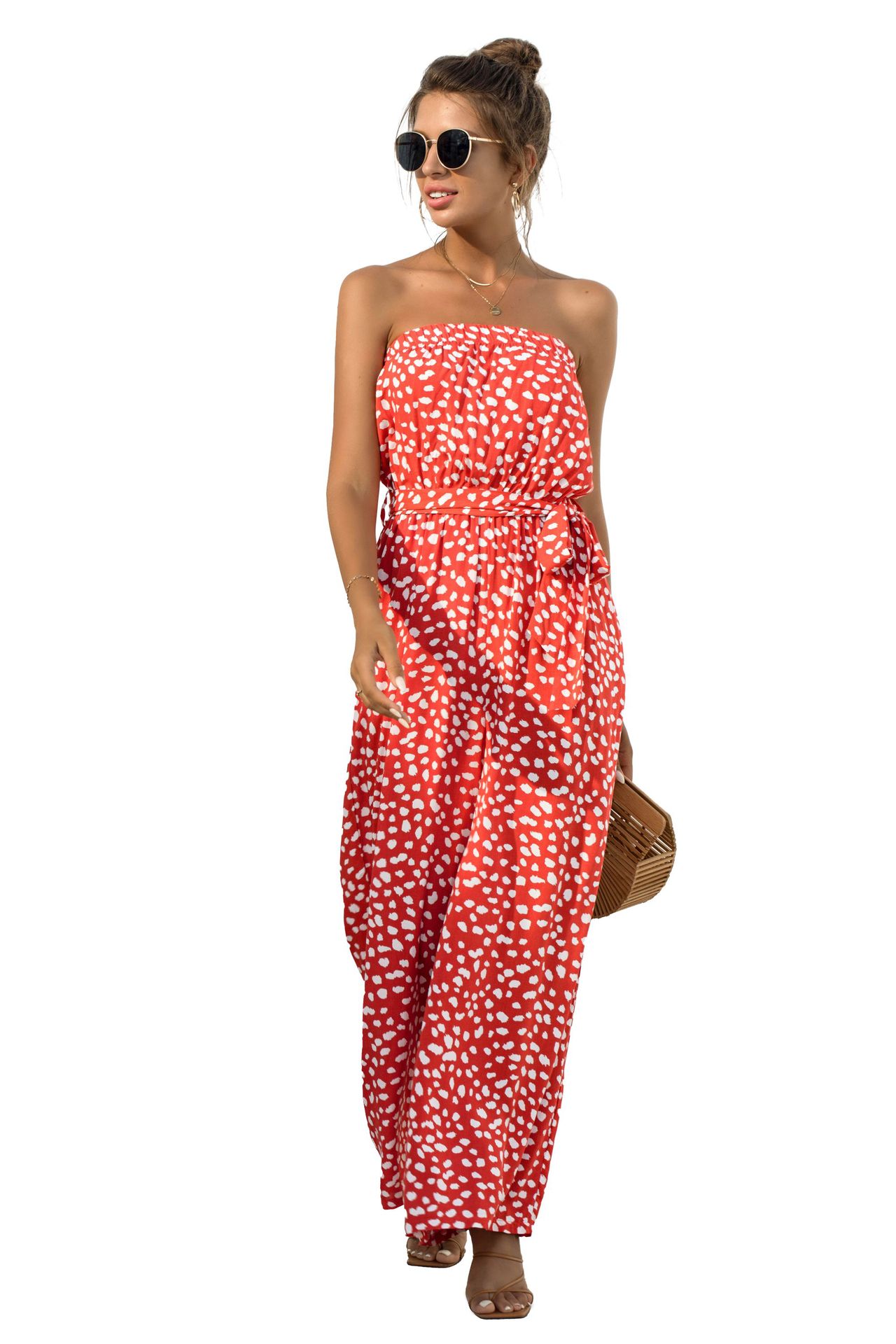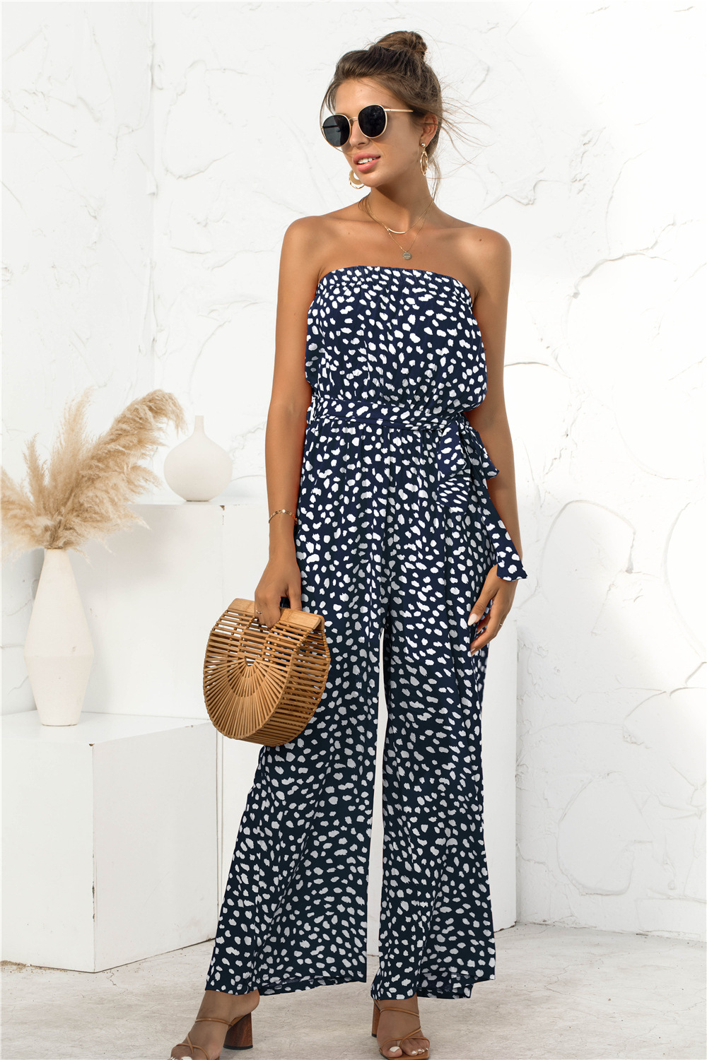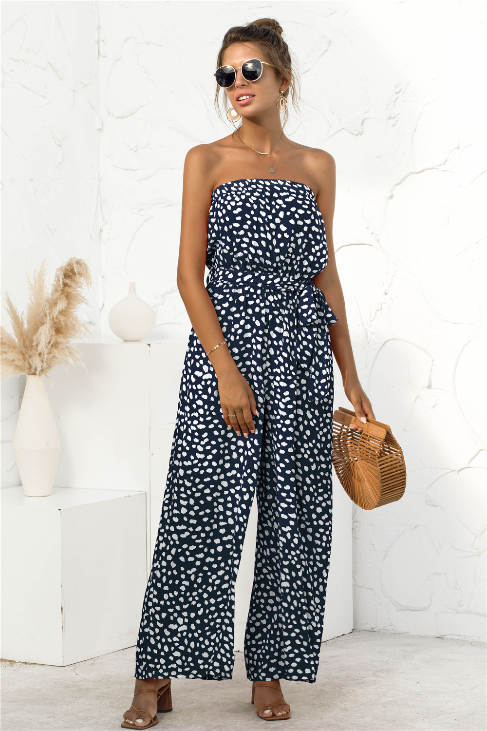 Tube Top Heart-Shaped Dot Print Lace-up Wide-Leg Jumpsuit