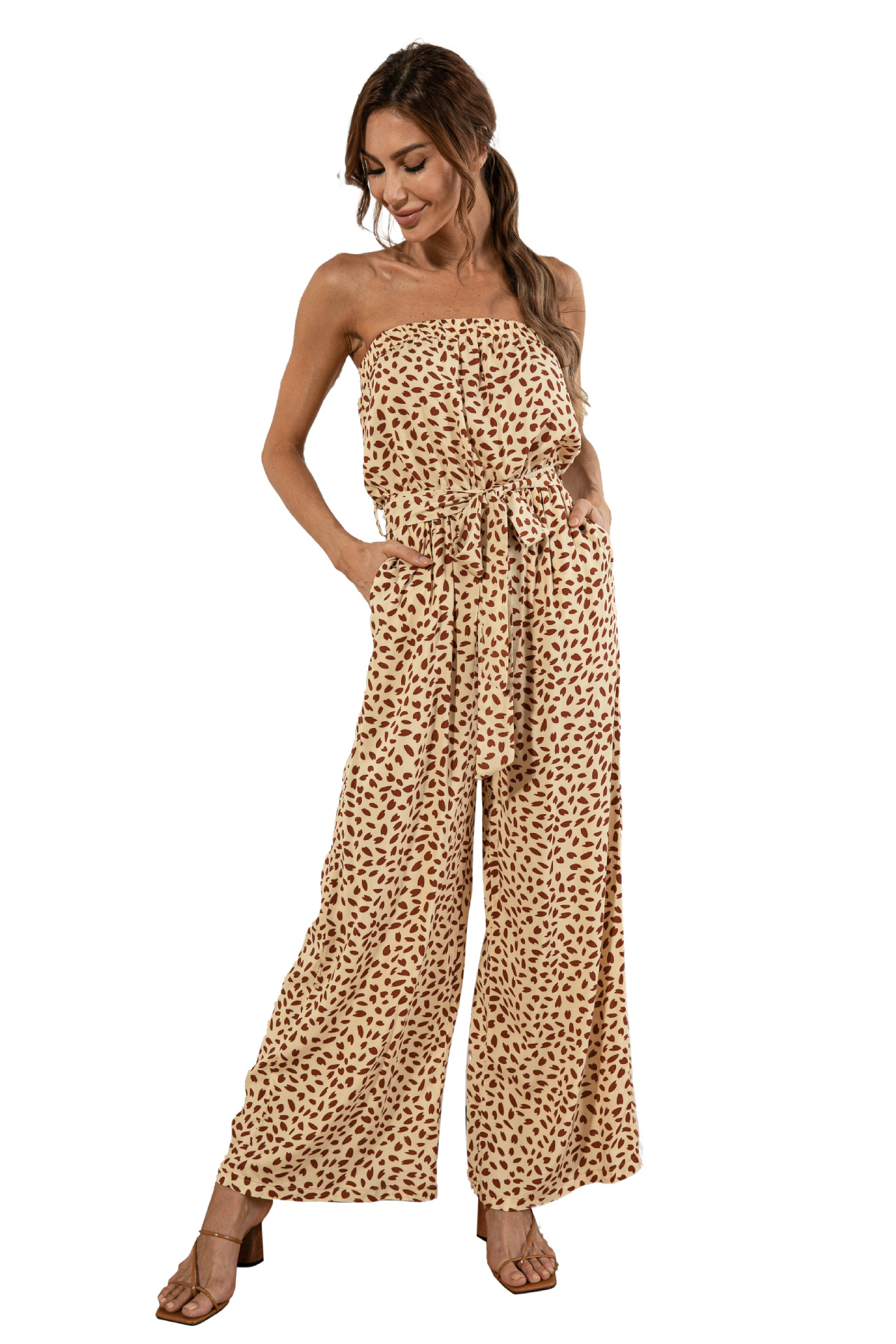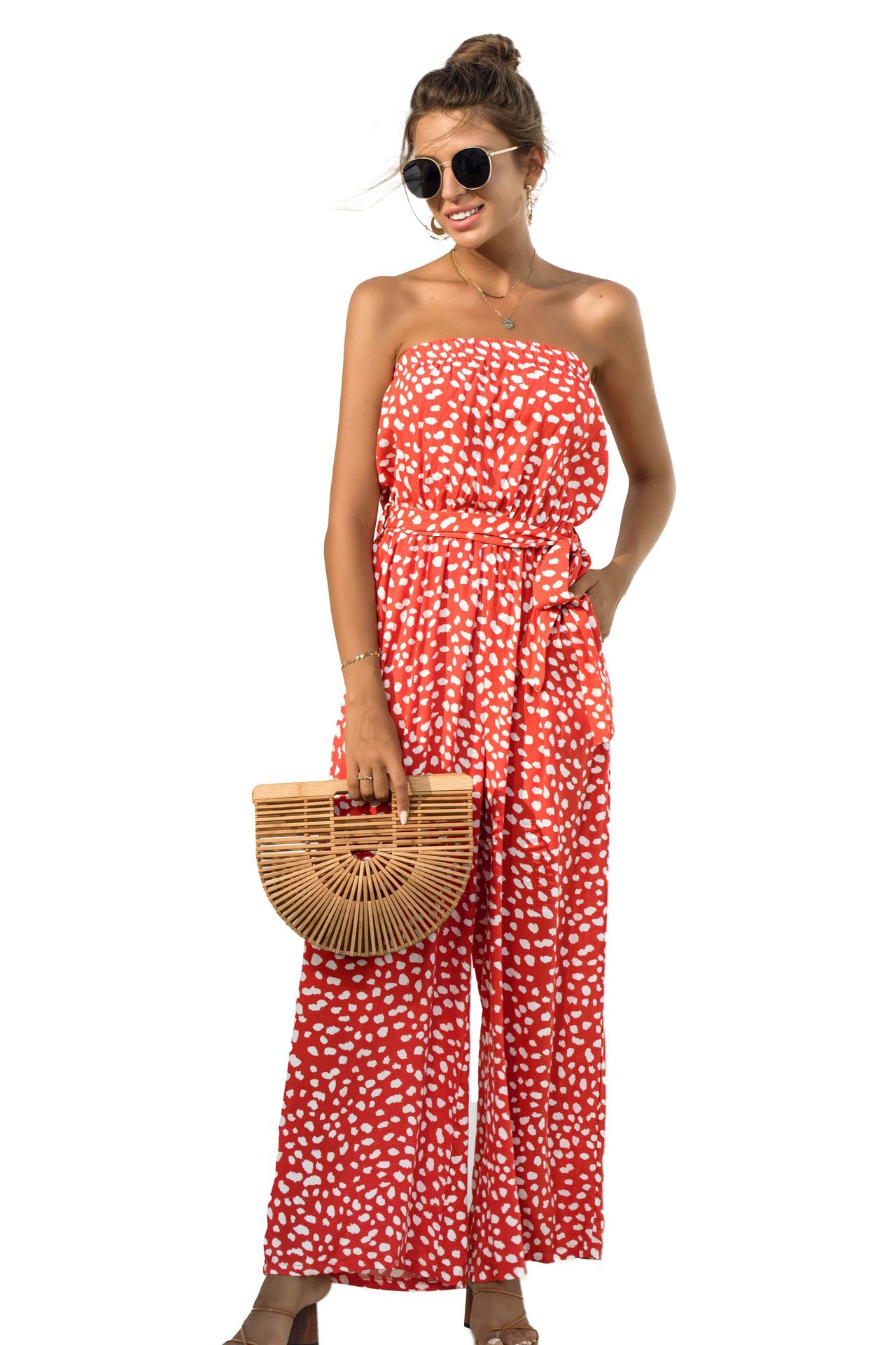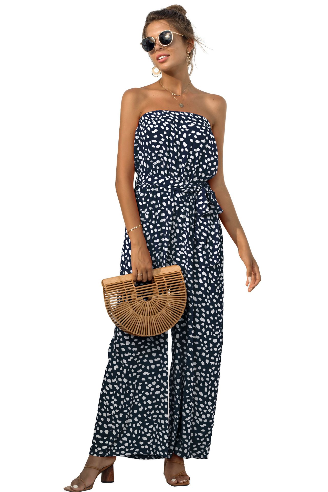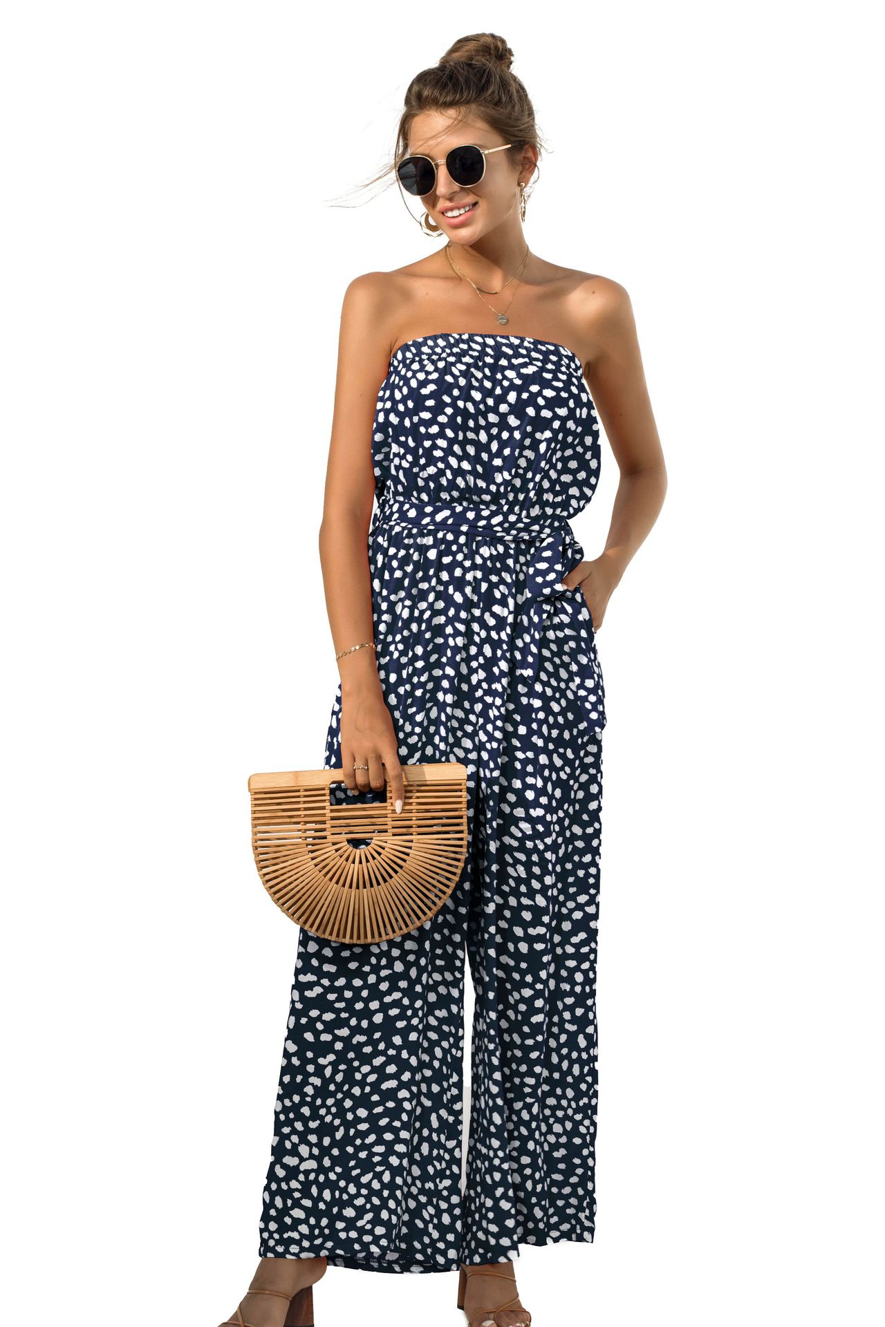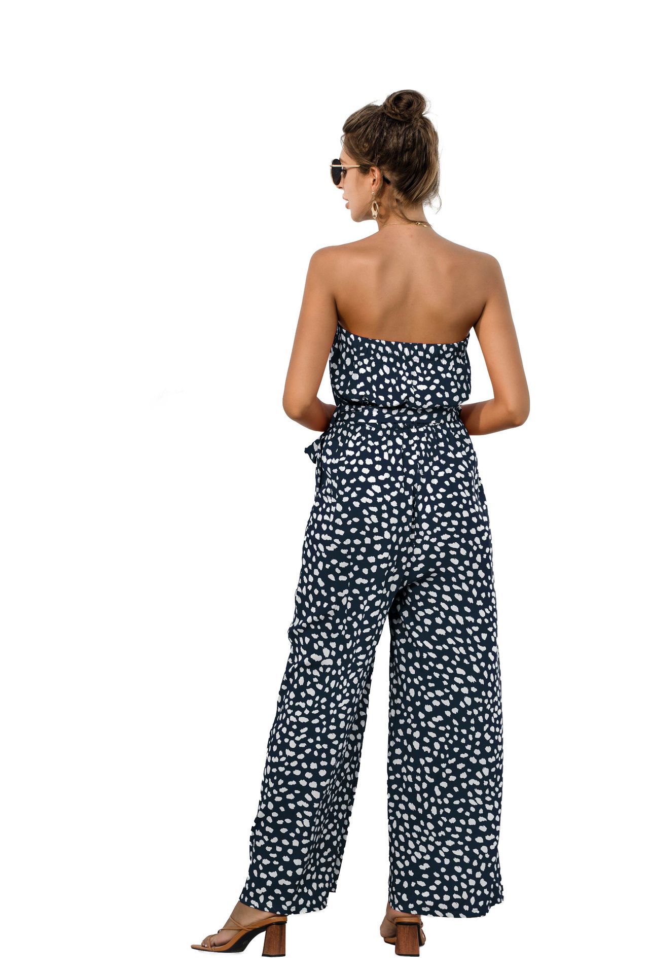 Tube Top Heart-Shaped Dot Print Lace-up Wide-Leg Jumpsuit