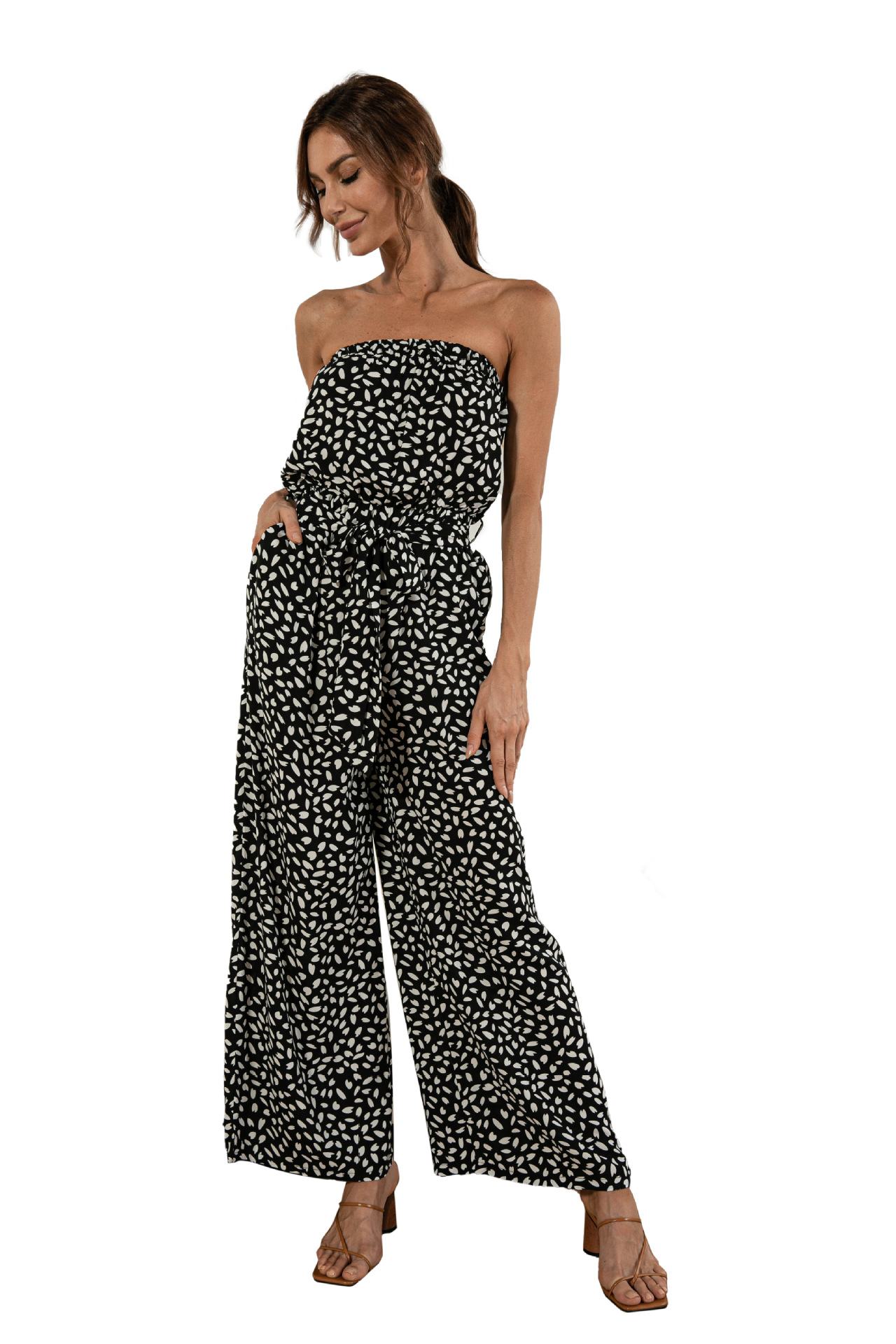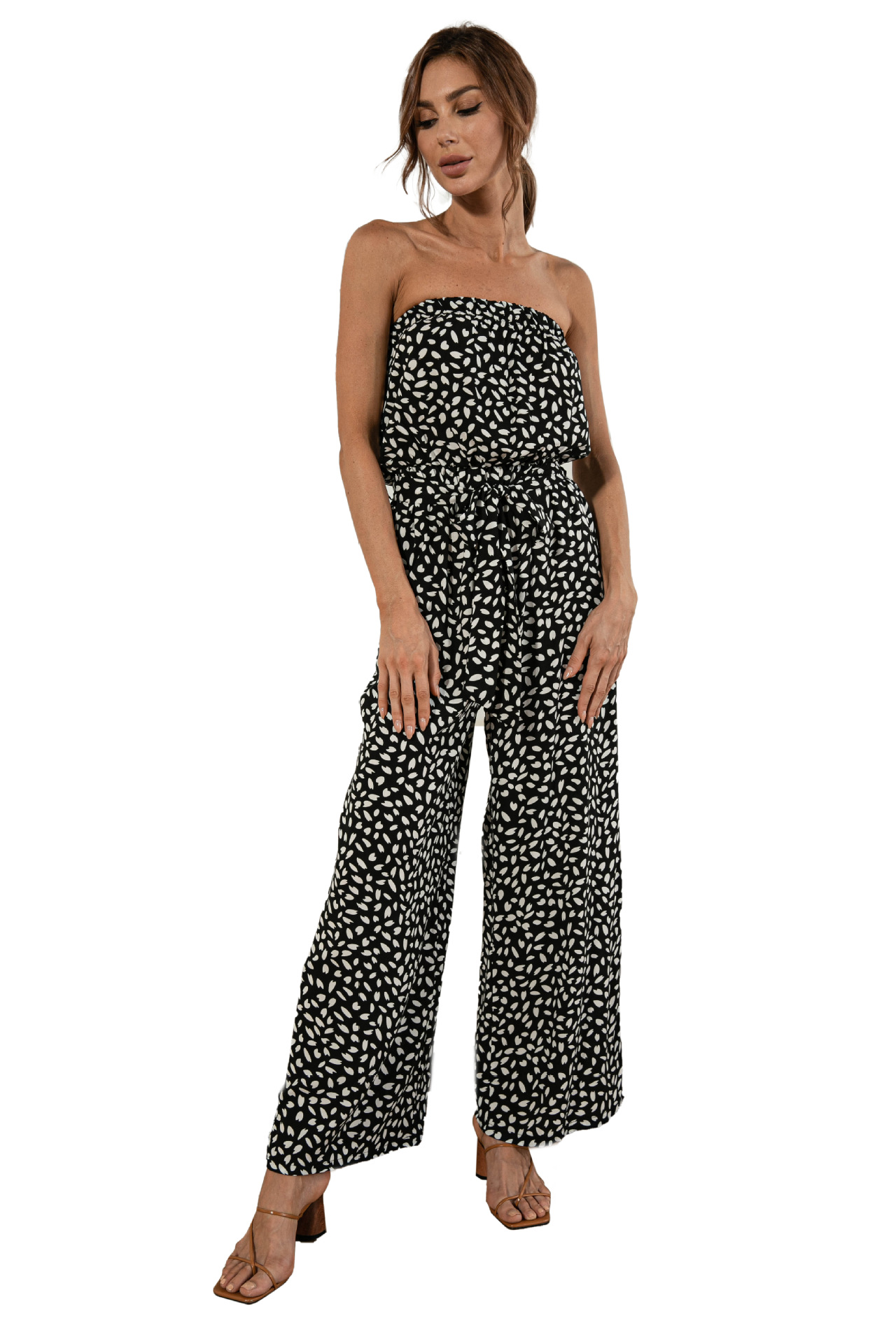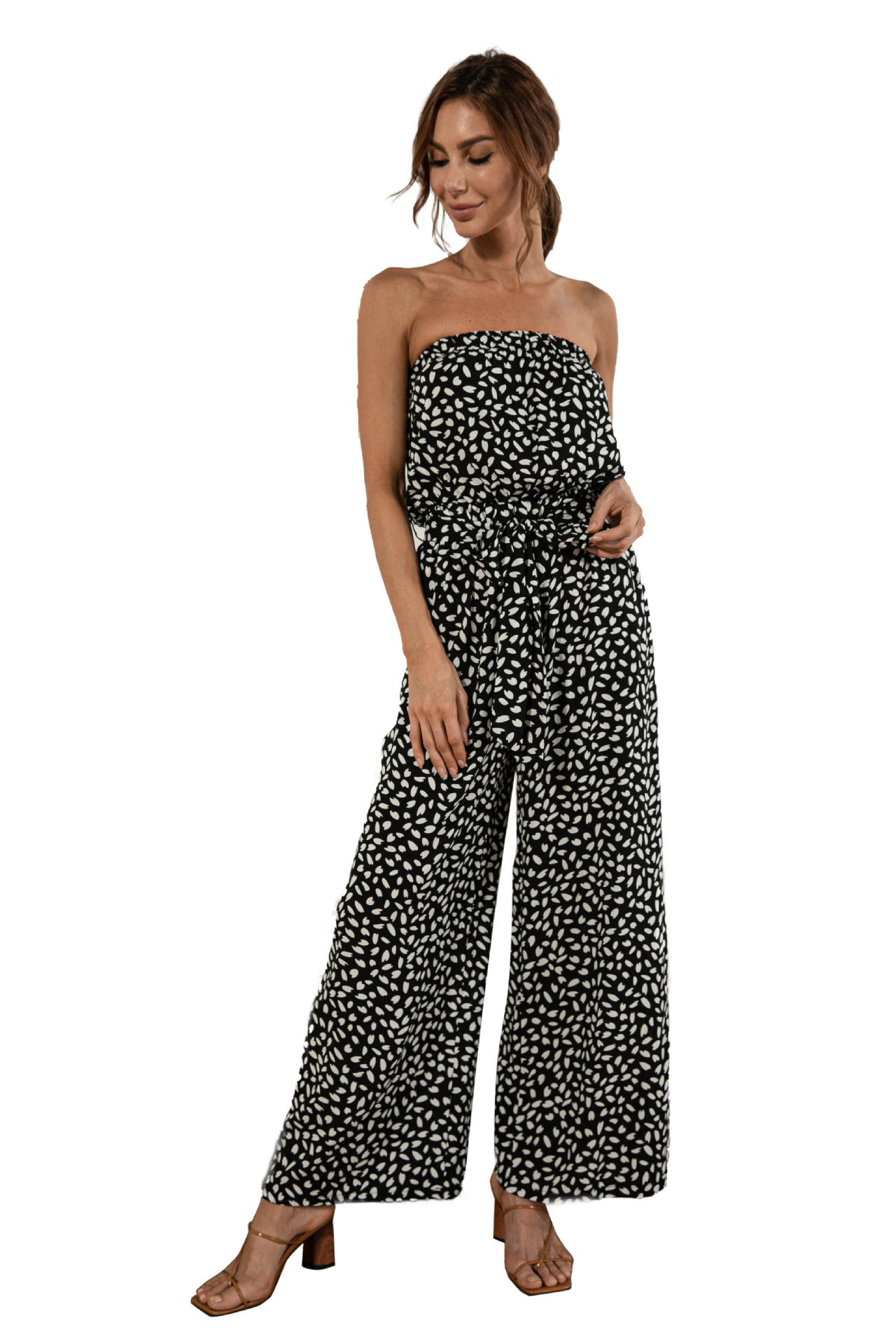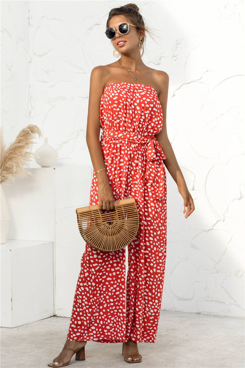 Tube Top Heart-Shaped Dot Print Lace-up Wide-Leg Jumpsuit