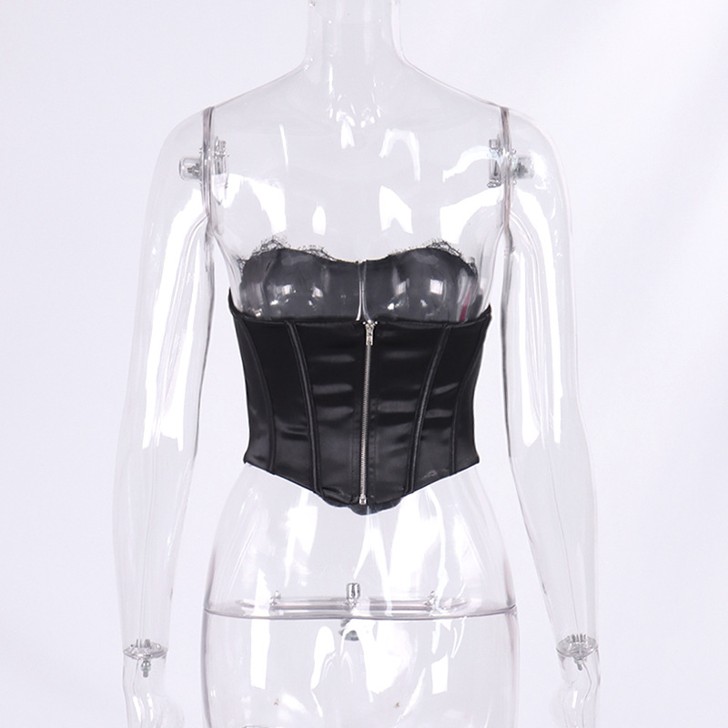 Tube Top Vest Satin Lace Boning Corset Bra Backless Sleeveless Vest