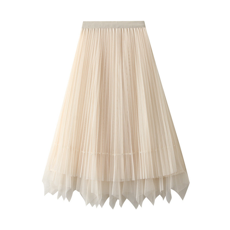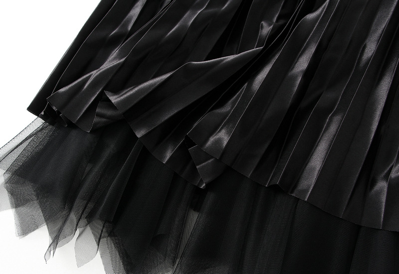 Two Sided Skirt Mid Length High Waist Pleated Skirt Irregular Asymmetric Big Skirt