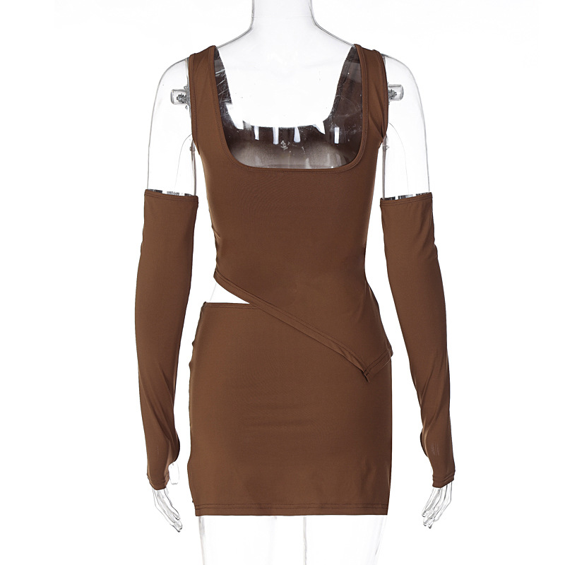 U Collar Backless Top Slim Fit Slit Skirt Set
