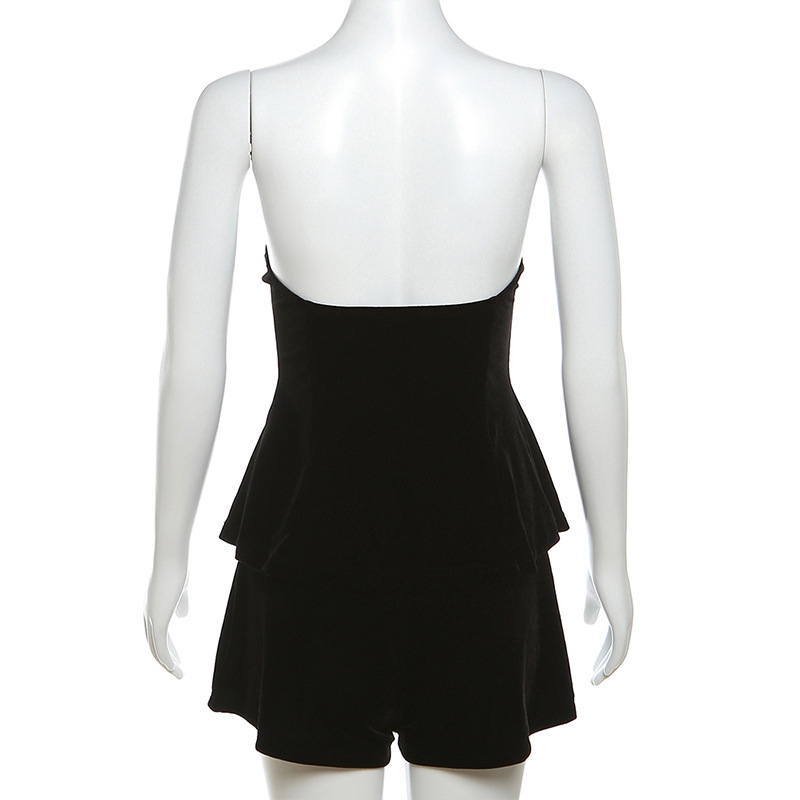 V neck Slim Fit Backless Tube Top Low Waist Hip Lifting Casual Shorts Set
