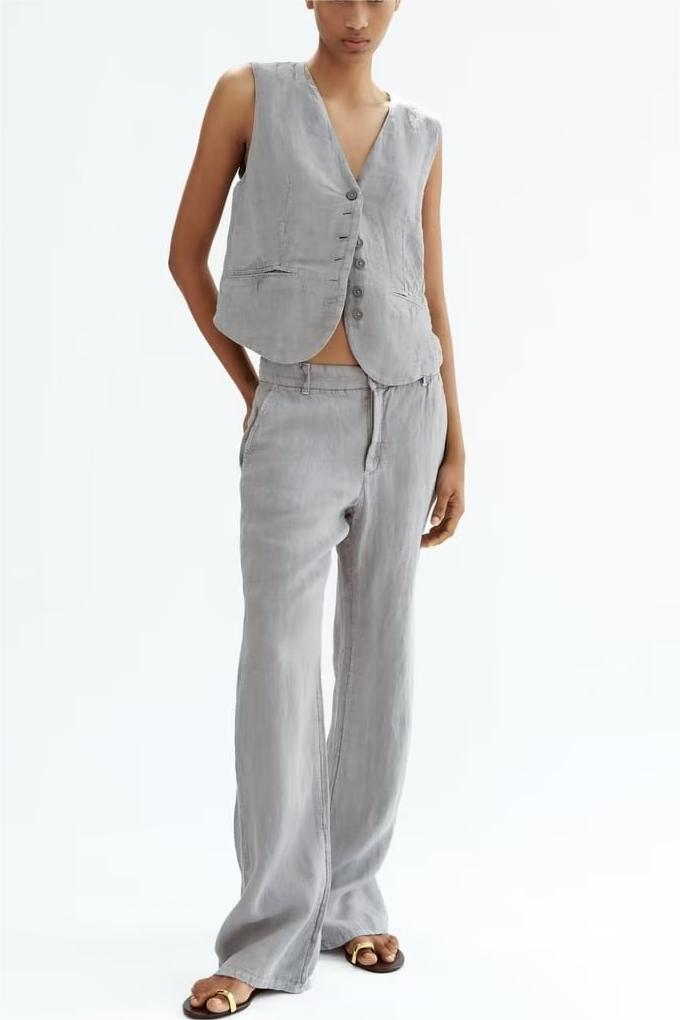 V neck Strap Decorative Vest High Waist Casual Pants Suit