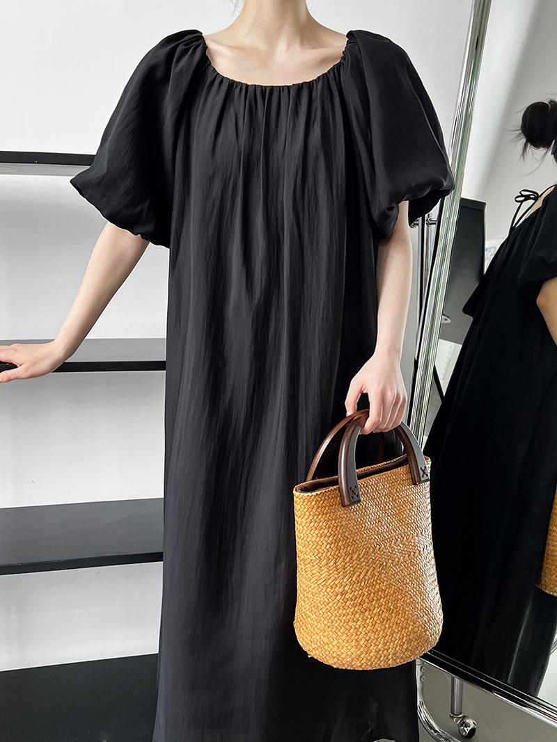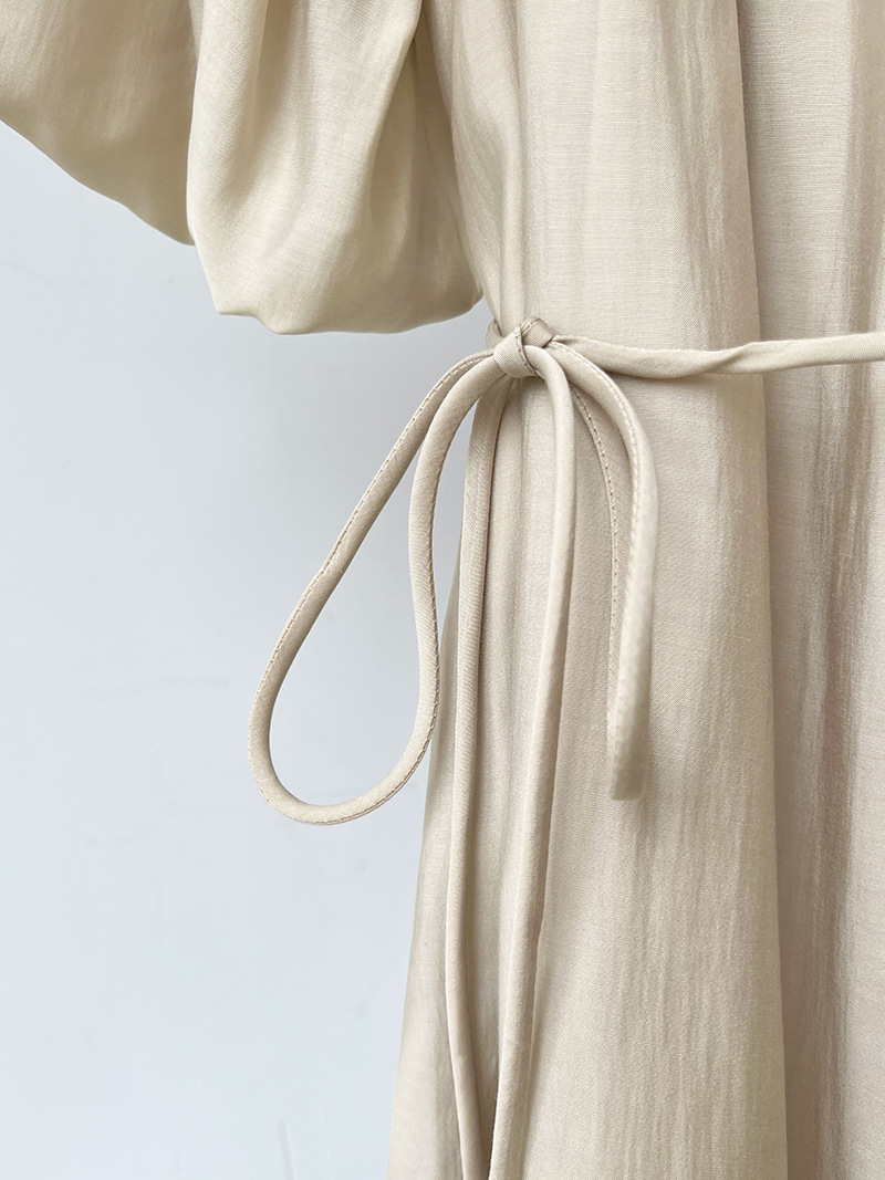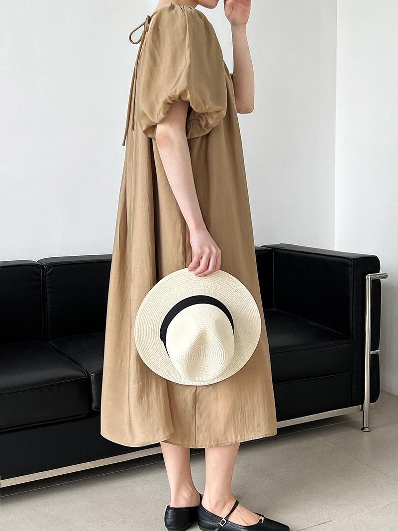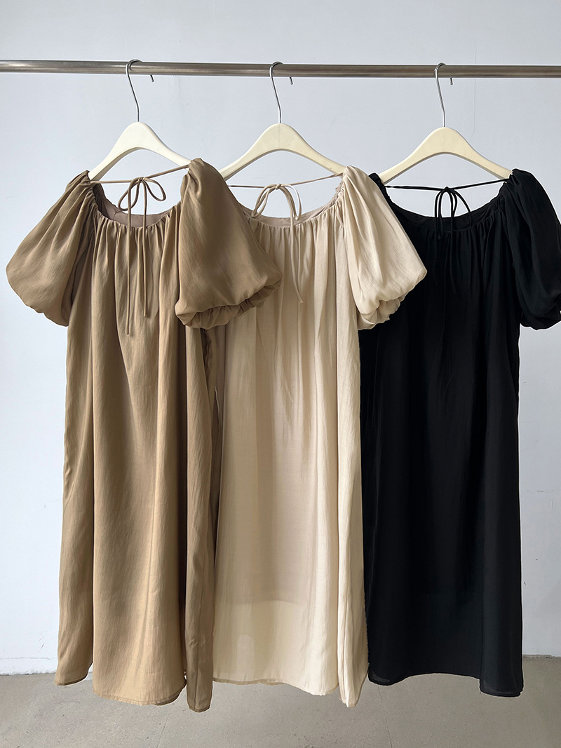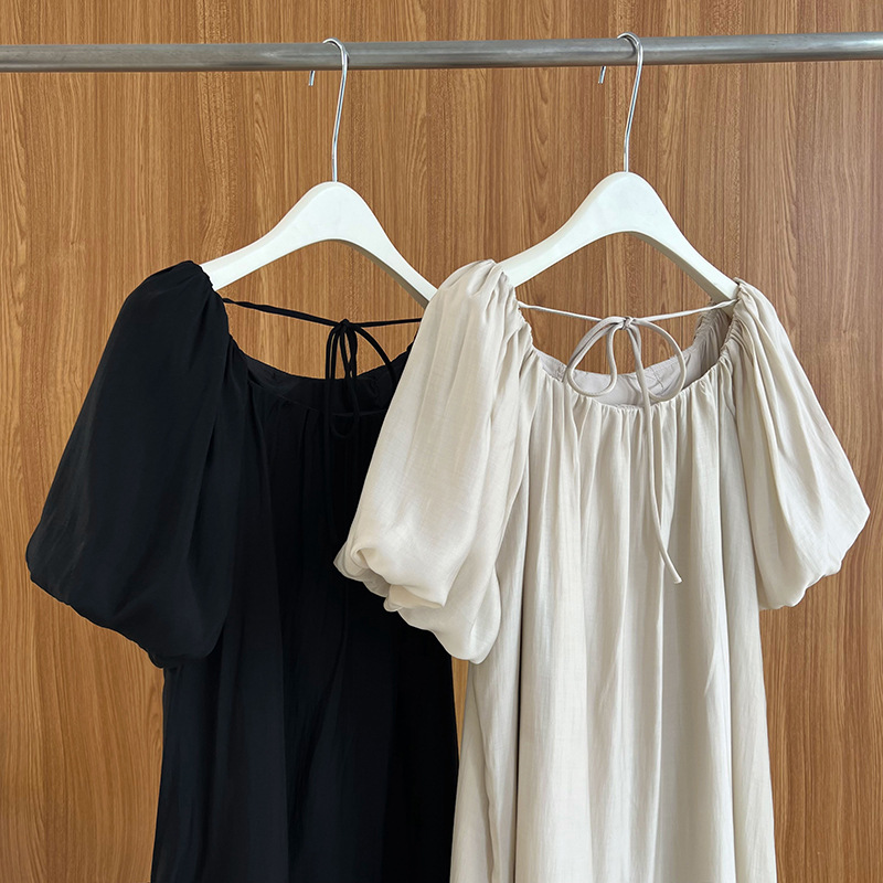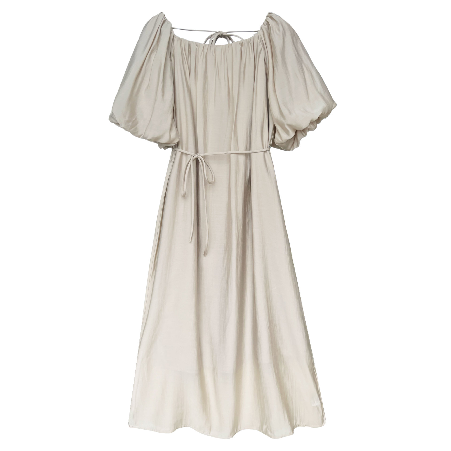 Wear Both Tencel Puff Sleeve Dress Korean Thin Lace up Waist Tight Square Collar Fairy Dress