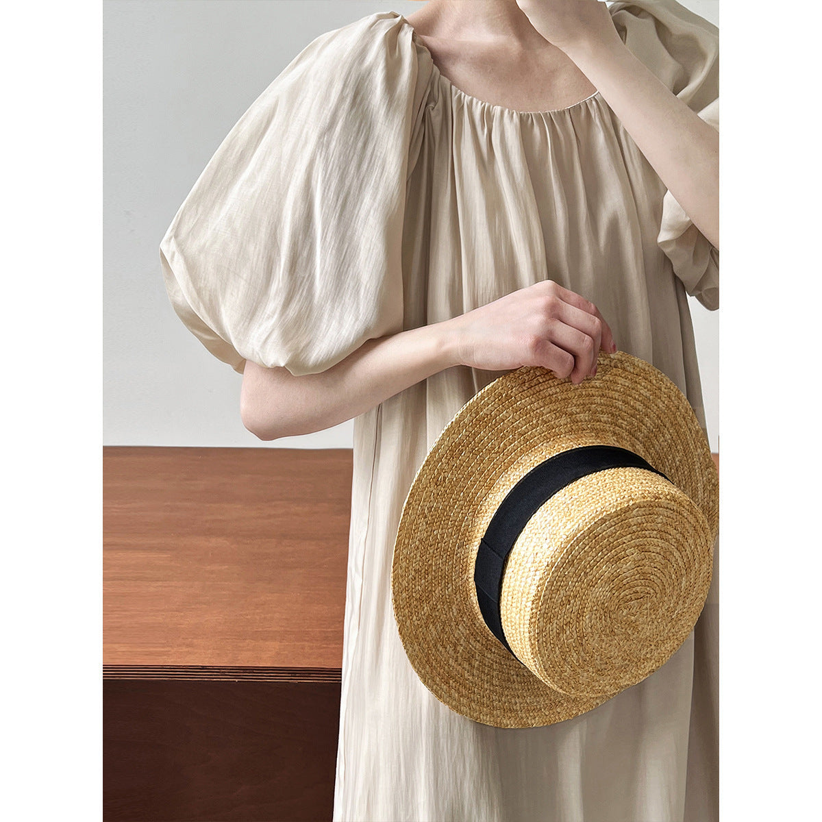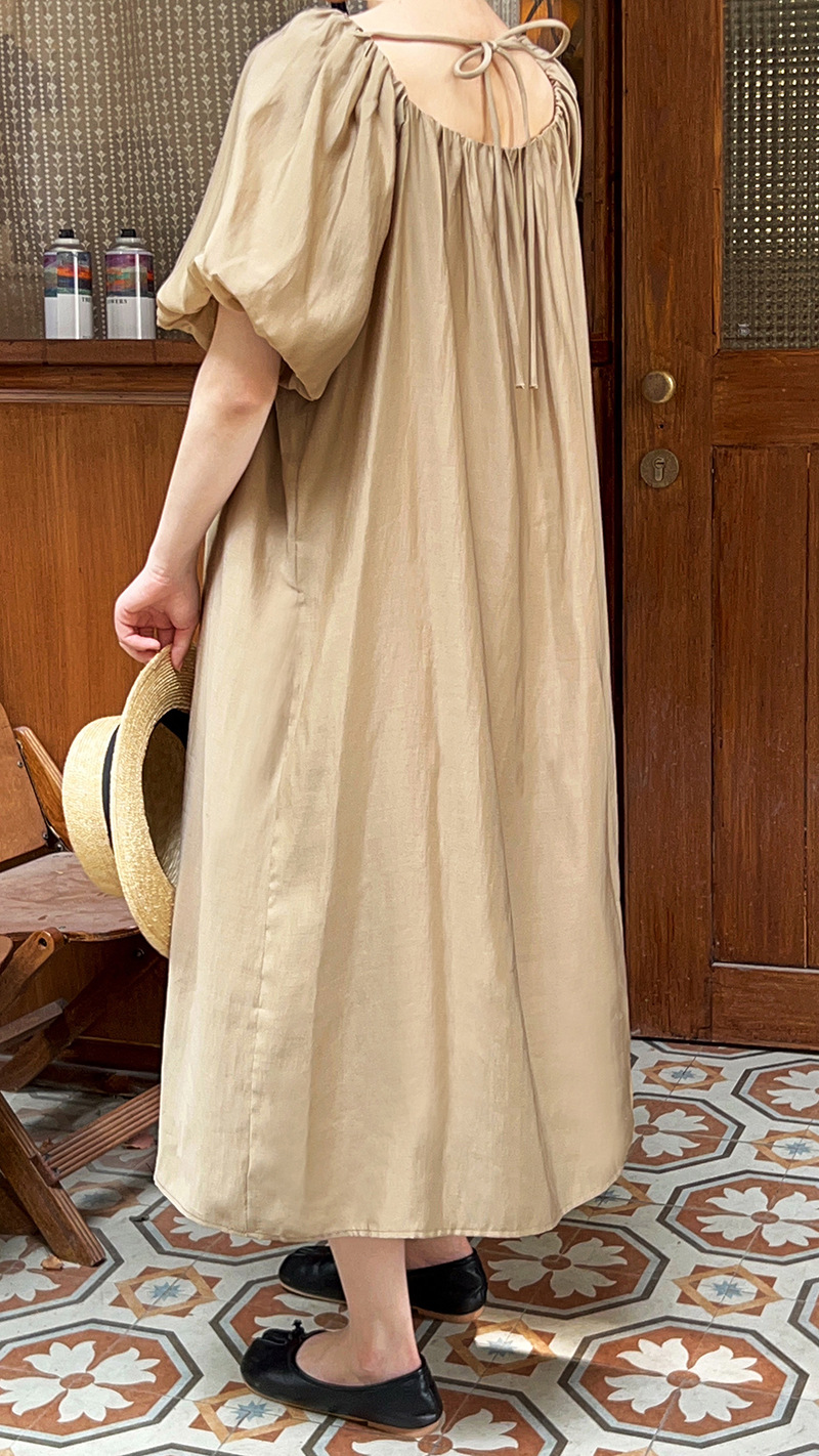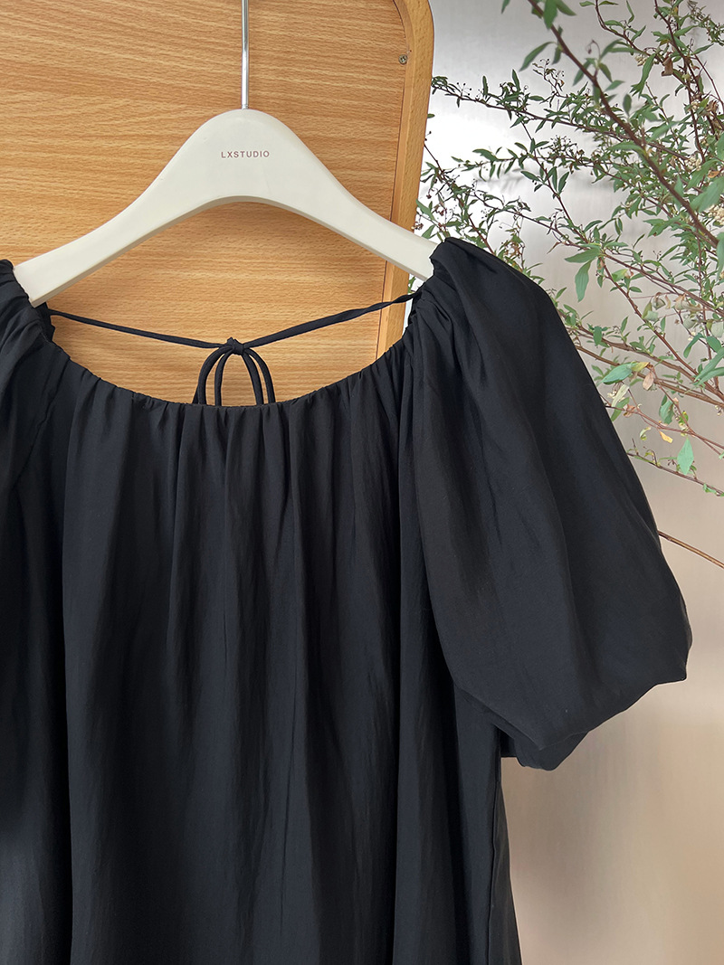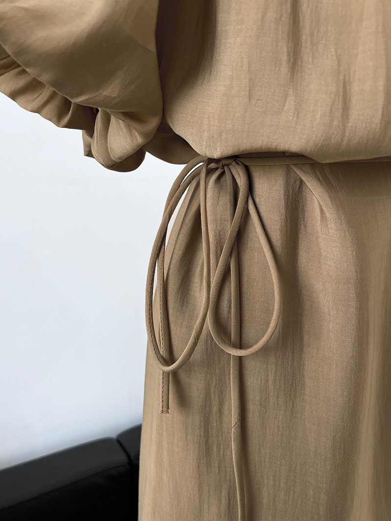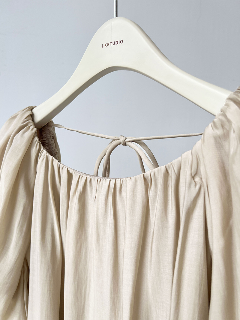 Wear Both Tencel Puff Sleeve Dress Korean Thin Lace up Waist Tight Square Collar Fairy Dress