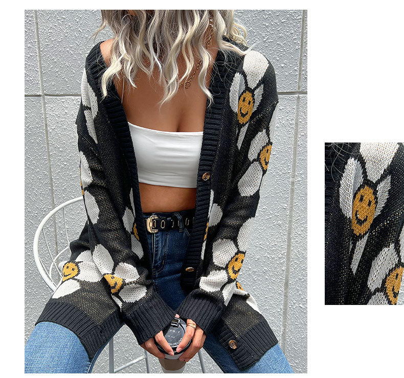 Wear Floral Long Sleeve Sweater Cardigan Mid Length