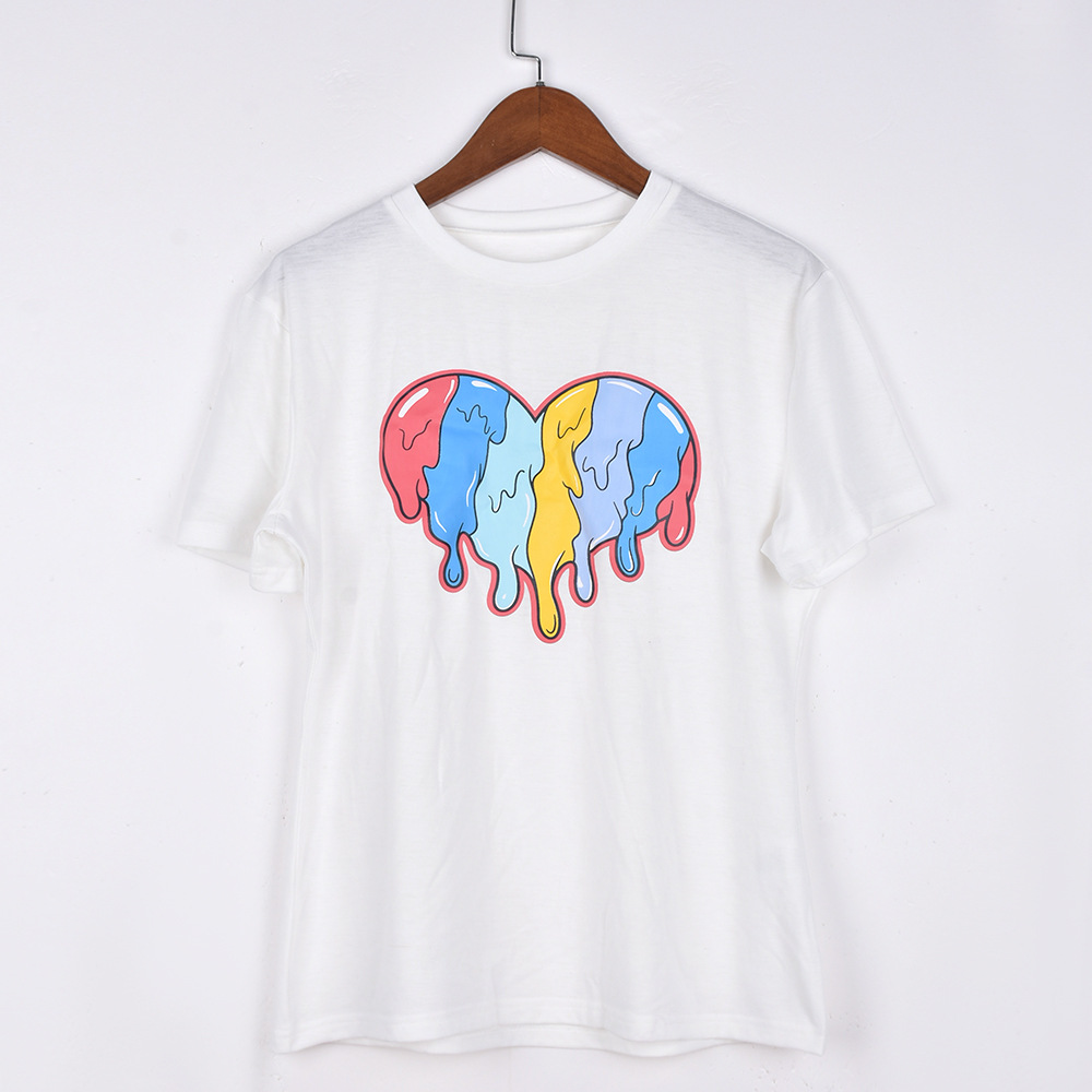 Wear Printed Contrast Color Love Street Hipster Loose T shirt