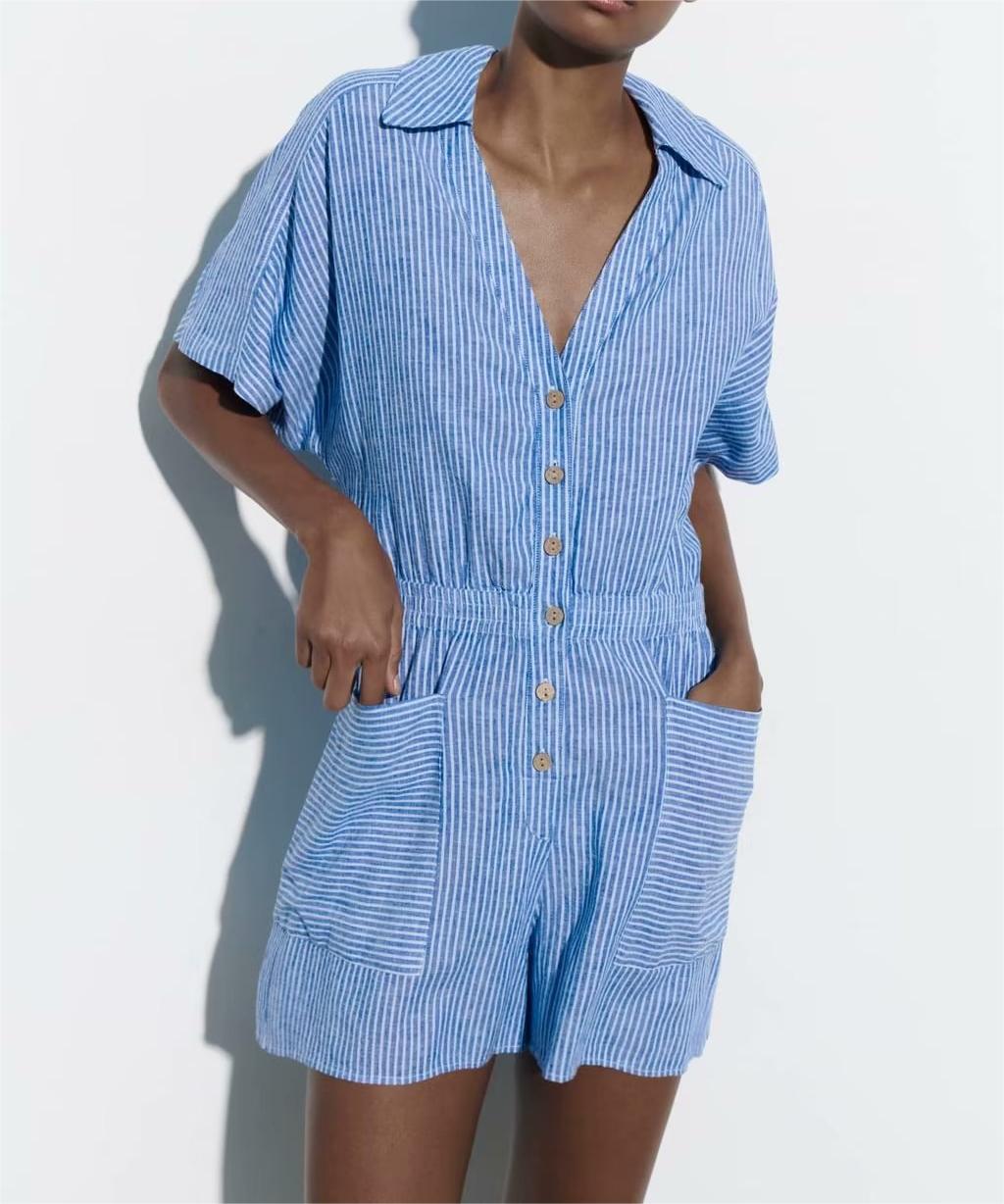 Wind Linen Blended Romper Casual Shorts