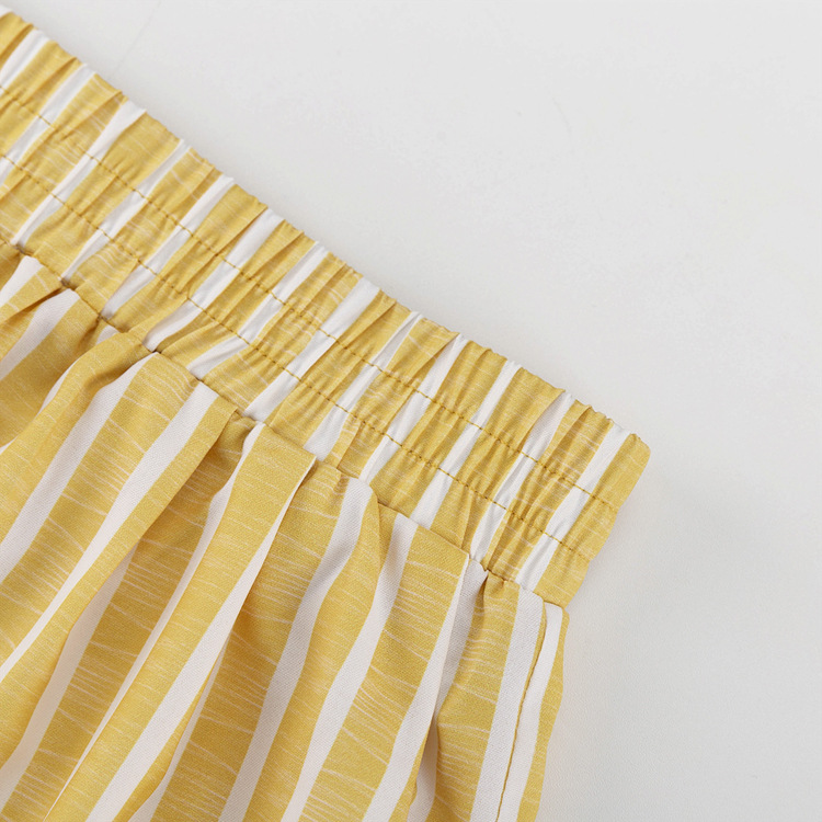 Women' Striped Long Sleeve Loose Lace up Top High Waist Trousers Casual Set