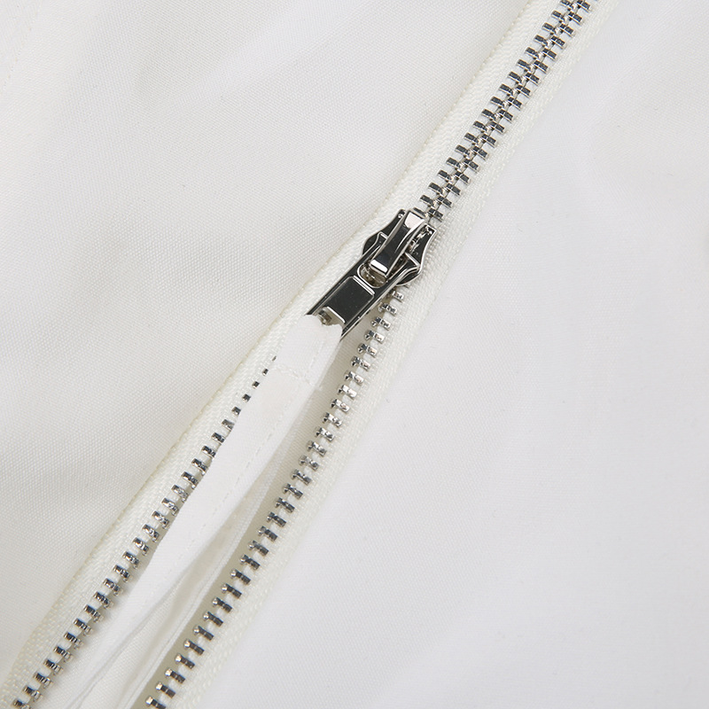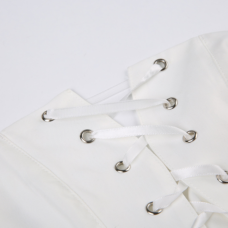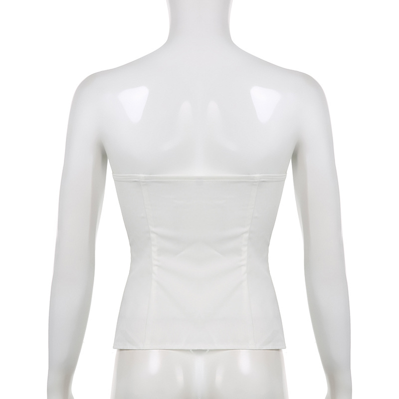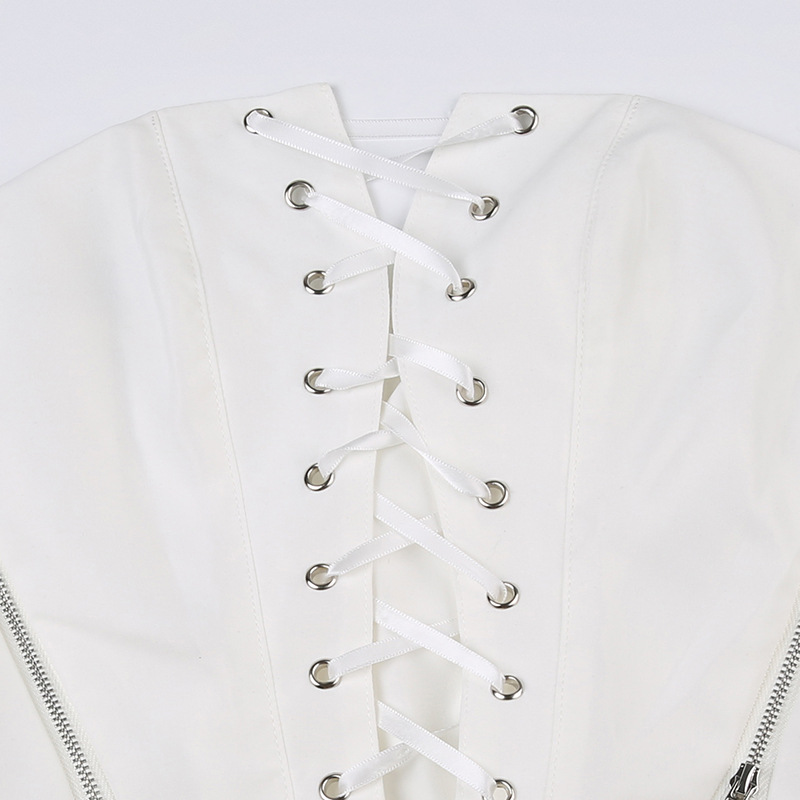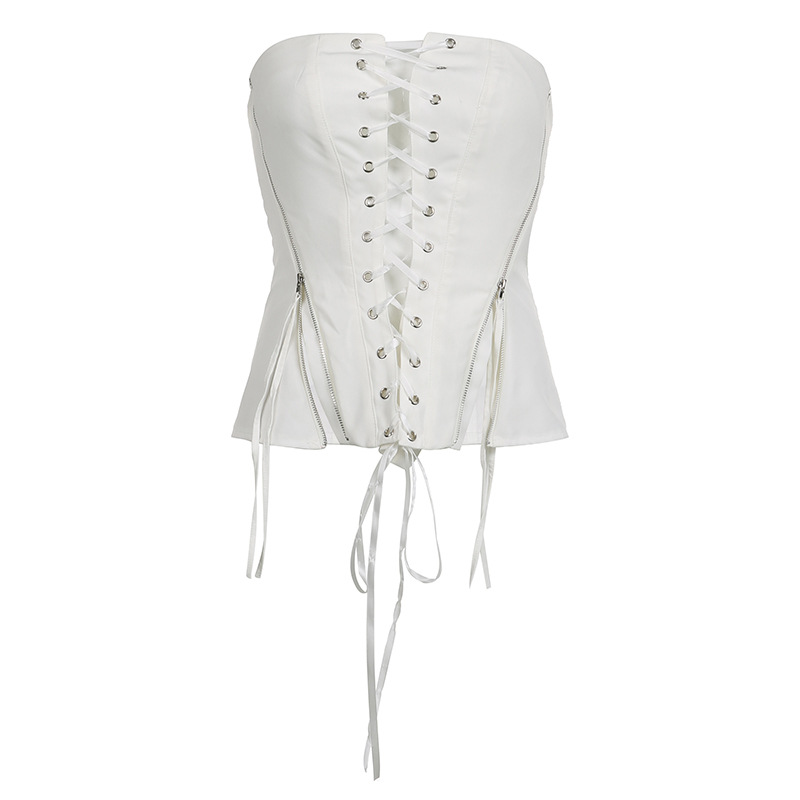 Zipper Strap Waist White Bra Top Slim Fit Backless Vest